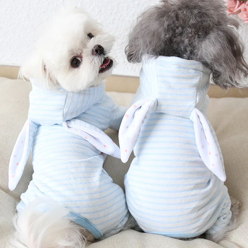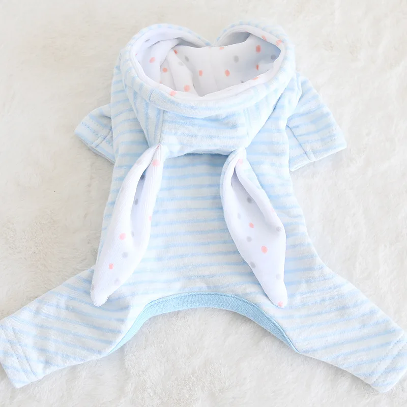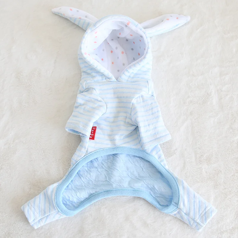 Синий полосатый кролик собака комбинезоны пижамы одежда для домашних животных зимний халат для собак толстые пальто Одежда для собака Кот Щенок Мальтийский