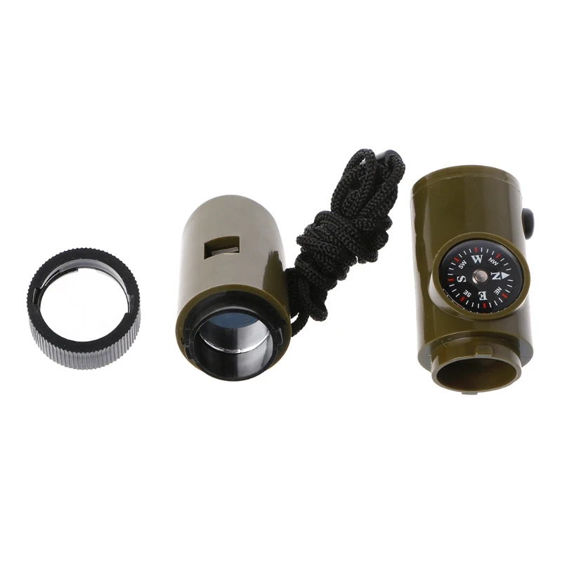 Новый многофункциональный свисток с компасом и термометром 7 в 1 для выживания на открытом воздухе фонарь Лупа