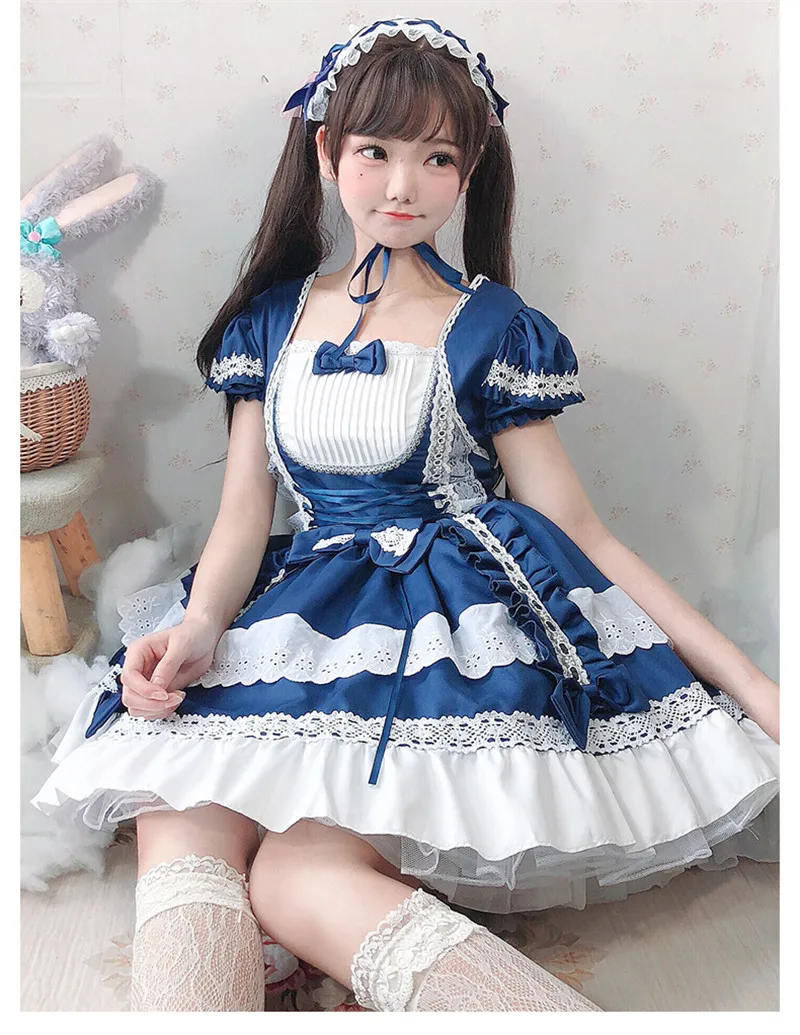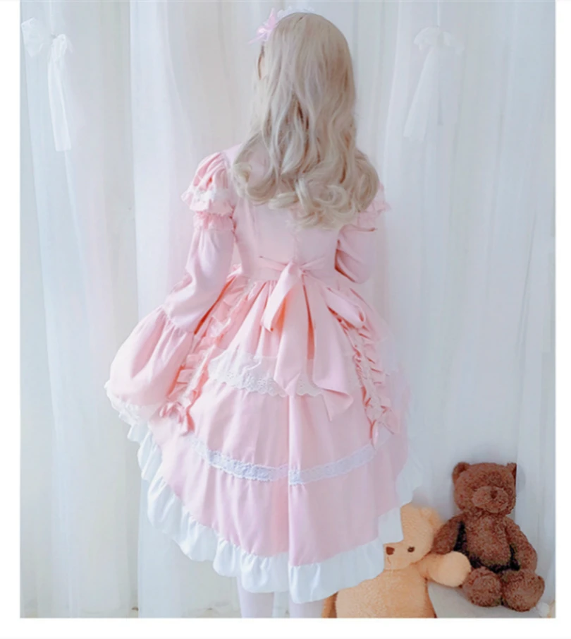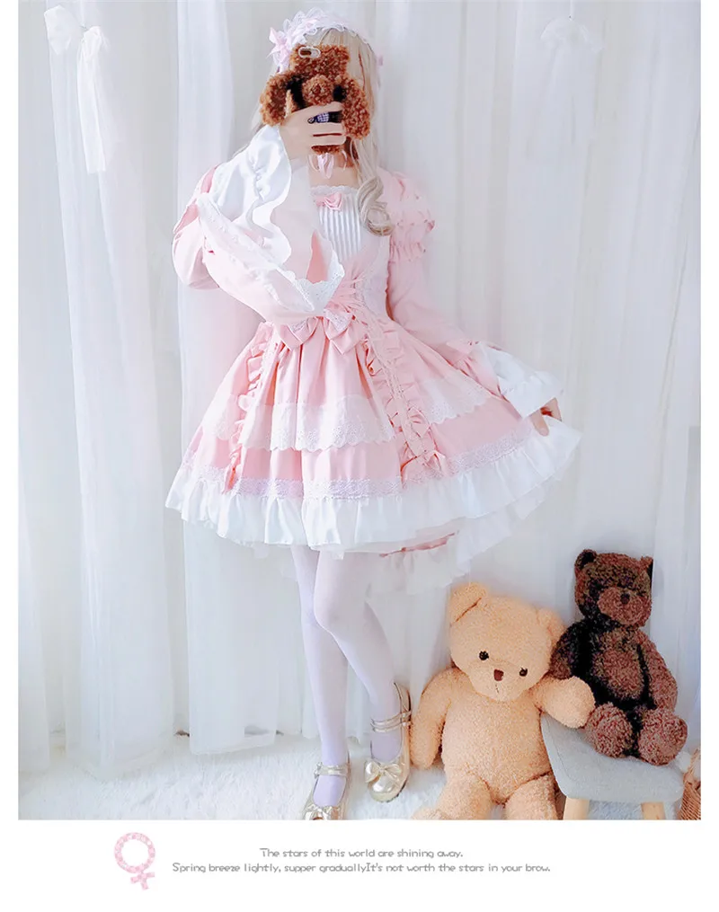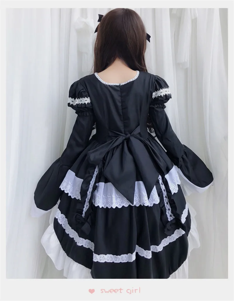 Винтажное женское платье в стиле Лолиты для девочек; Летнее платье с короткимдлинным рукавом и кружевным бантом и оборками; Милые вечерние платья для косплея