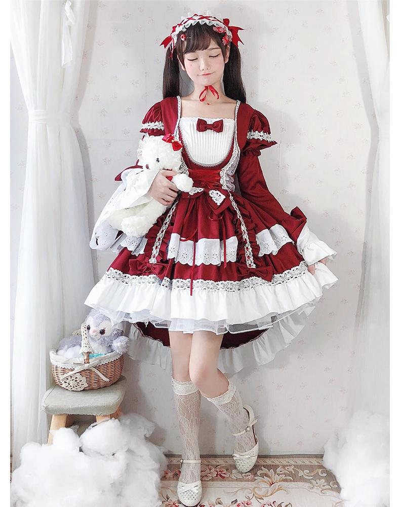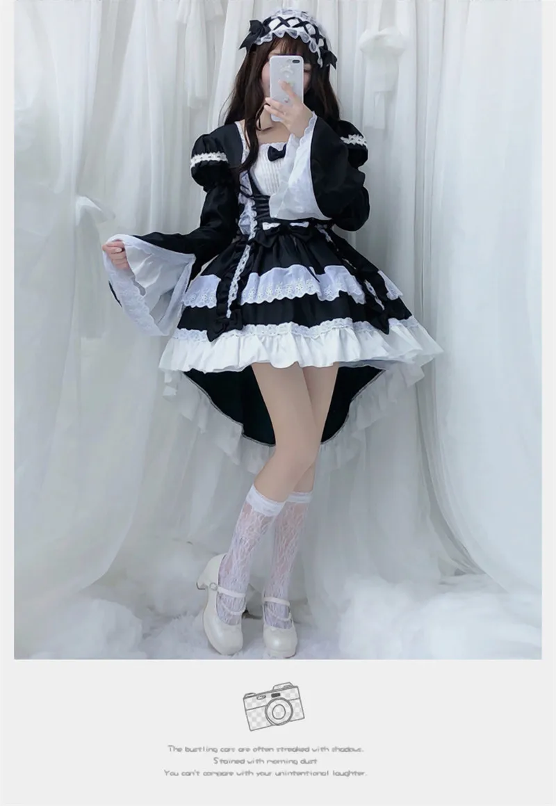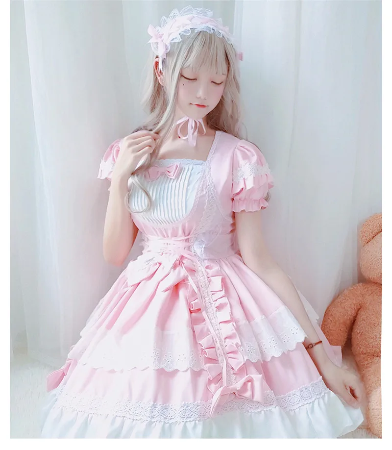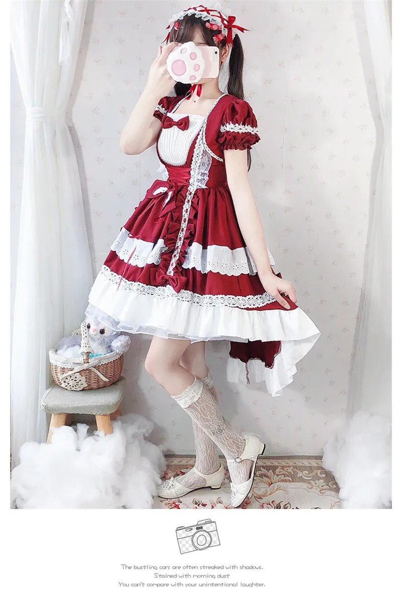 Винтажное женское платье в стиле Лолиты для девочек; Летнее платье с короткимдлинным рукавом и кружевным бантом и оборками; Милые вечерние платья для косплея
