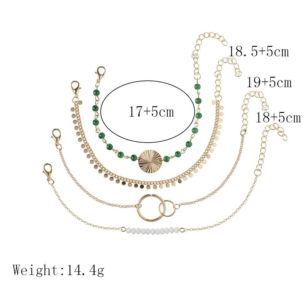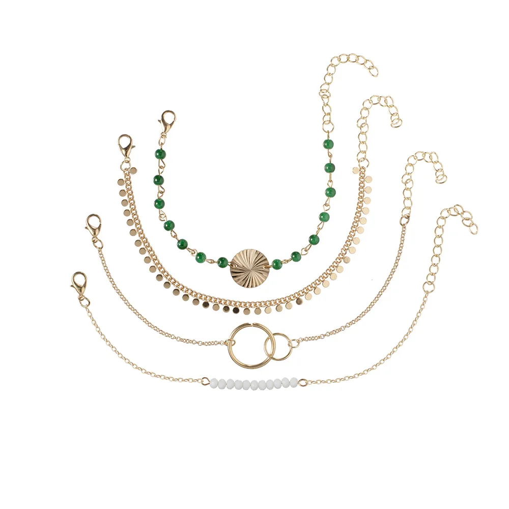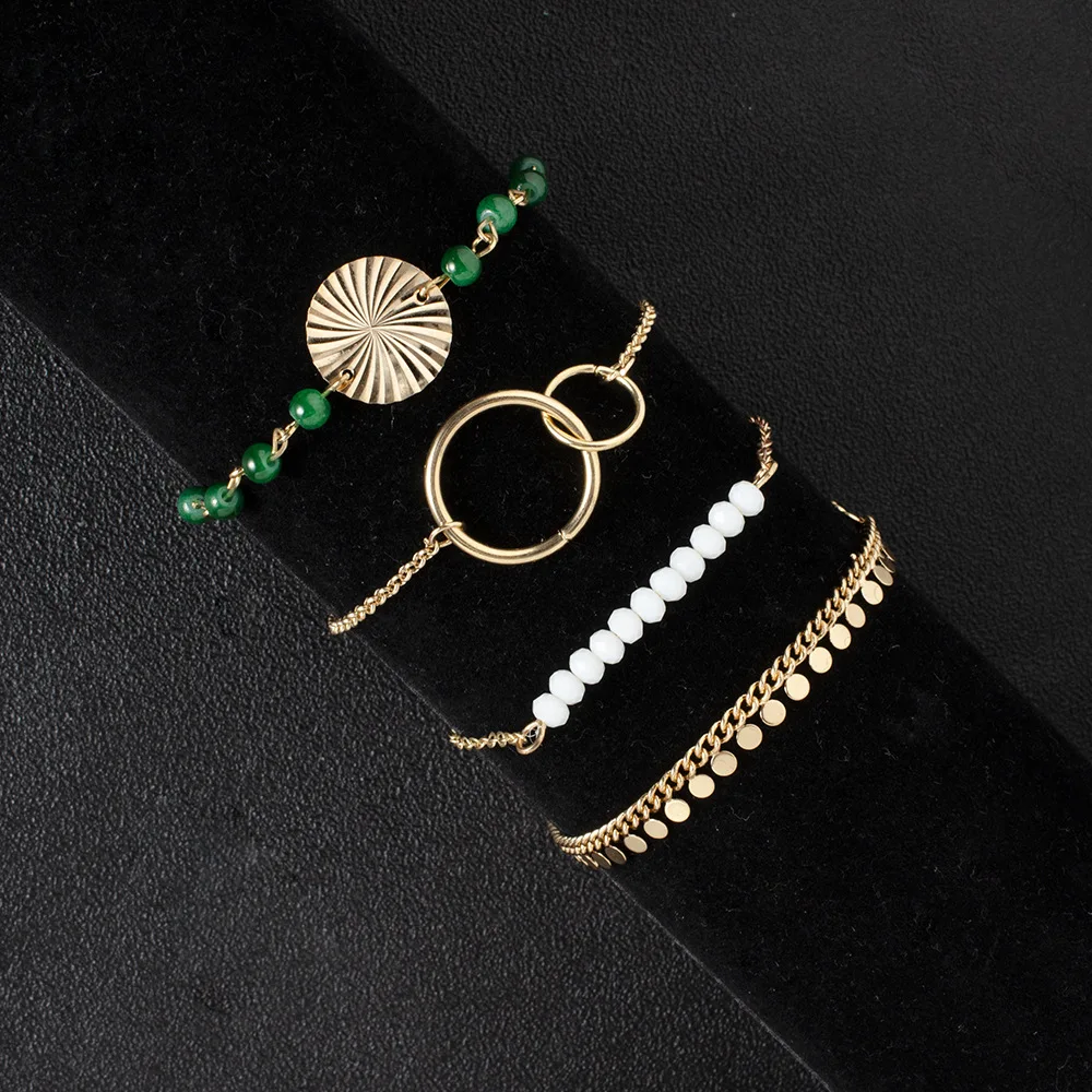 4 шт.компл. Комплект браслетов из зеленых бусин и цепочек для женщи...