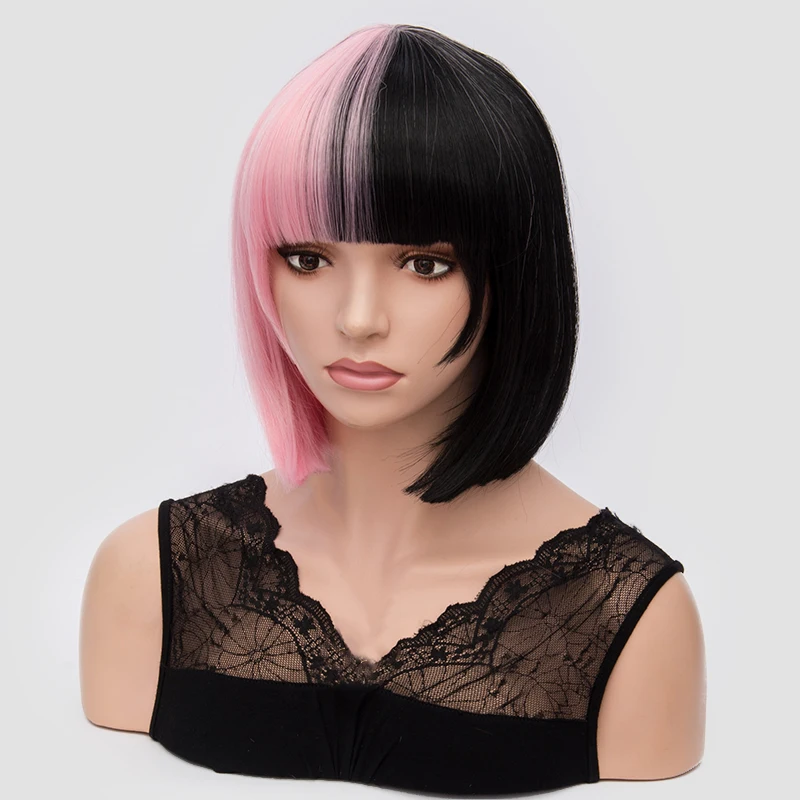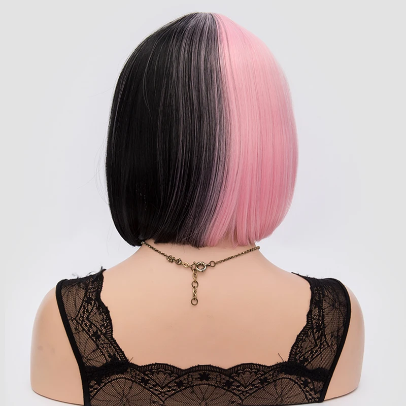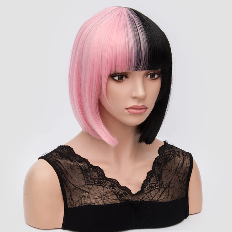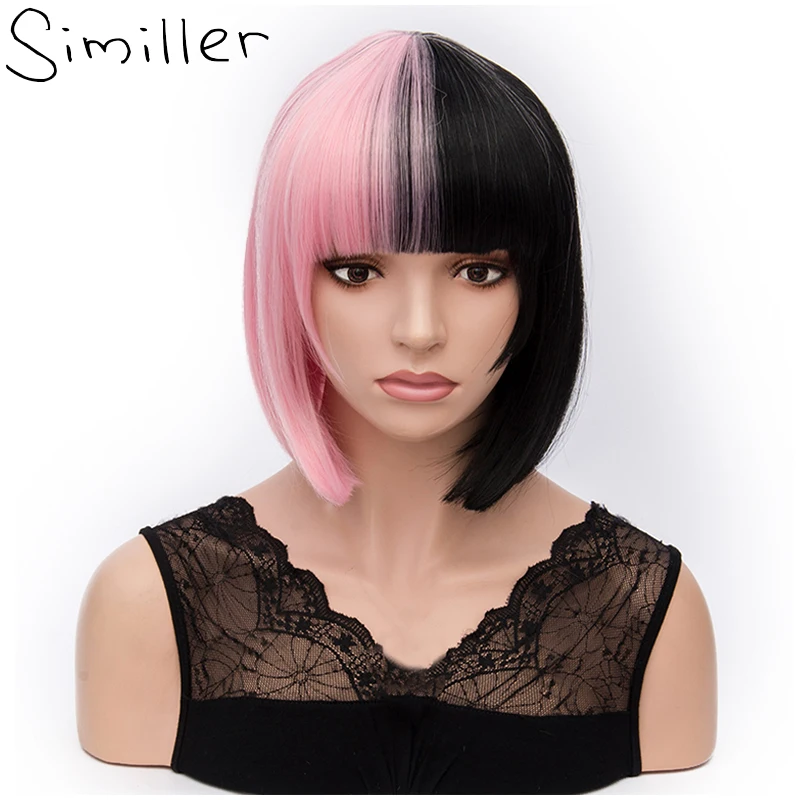 Similler женские прямые короткие синтетические волосы боб парики для косплея розовый черный лоскутный цвет Омбре высокотемпературное волокно