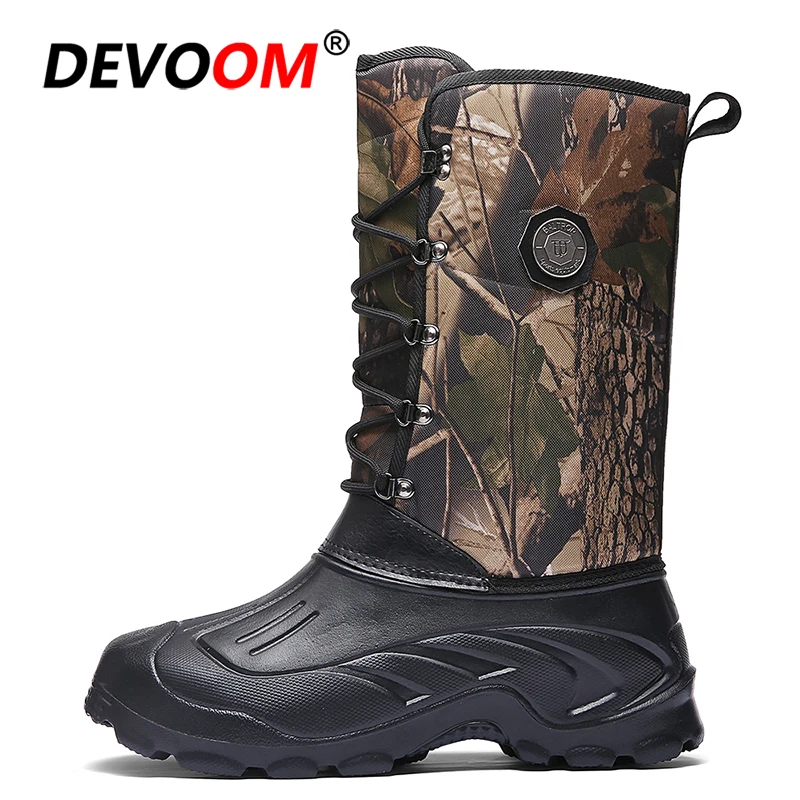 Камуфляжные Водонепроницаемые зимние сапоги, мужские зимние сапоги, ковбойские сапоги с мехом, теплые мужские повседневные рабочие сапоги для рыбалки, 2019
