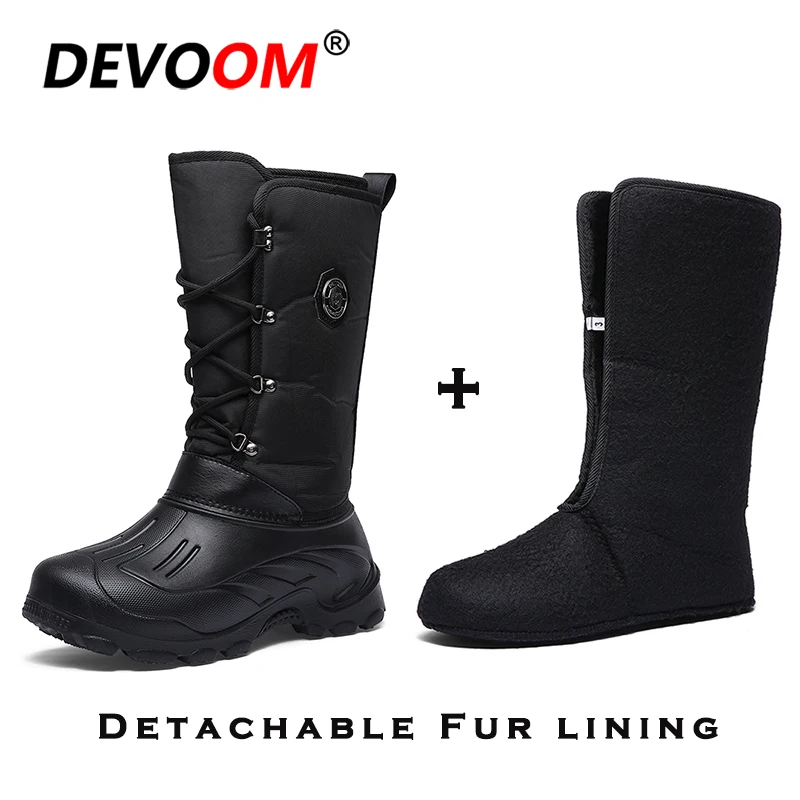2019 камуфляжные Водонепроницаемые зимние ботинки, мужские зимние ботинки, ковбойские ботинки с мехом, плюшевые теплые мужские повседневные рабочие сапоги до середины икры для рыбалки