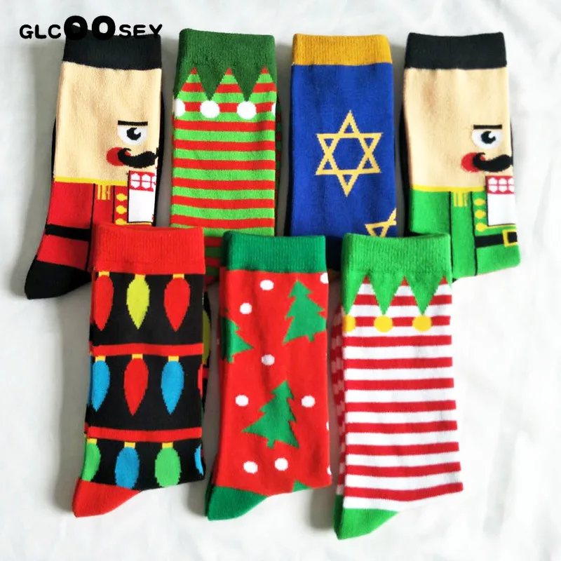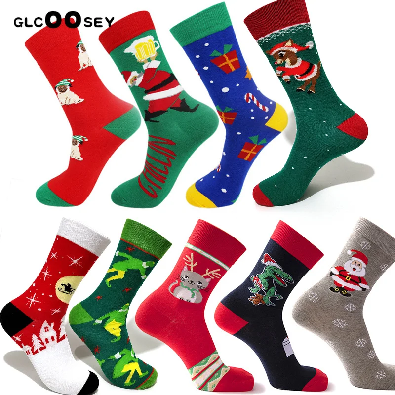 Новинка 2022, рождественские носки с надписью Счастливая елка, подарок, хлопковые осенне-зимние рождественские носки PEONFLY, мужские забавные новогодние носки с Санта-Клаусом