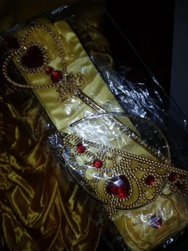 Все пришло быстро. Качество платья и перчаток - нормальное. Единственное - как все писали, волшебная палочка сломана и камушки отклеены.