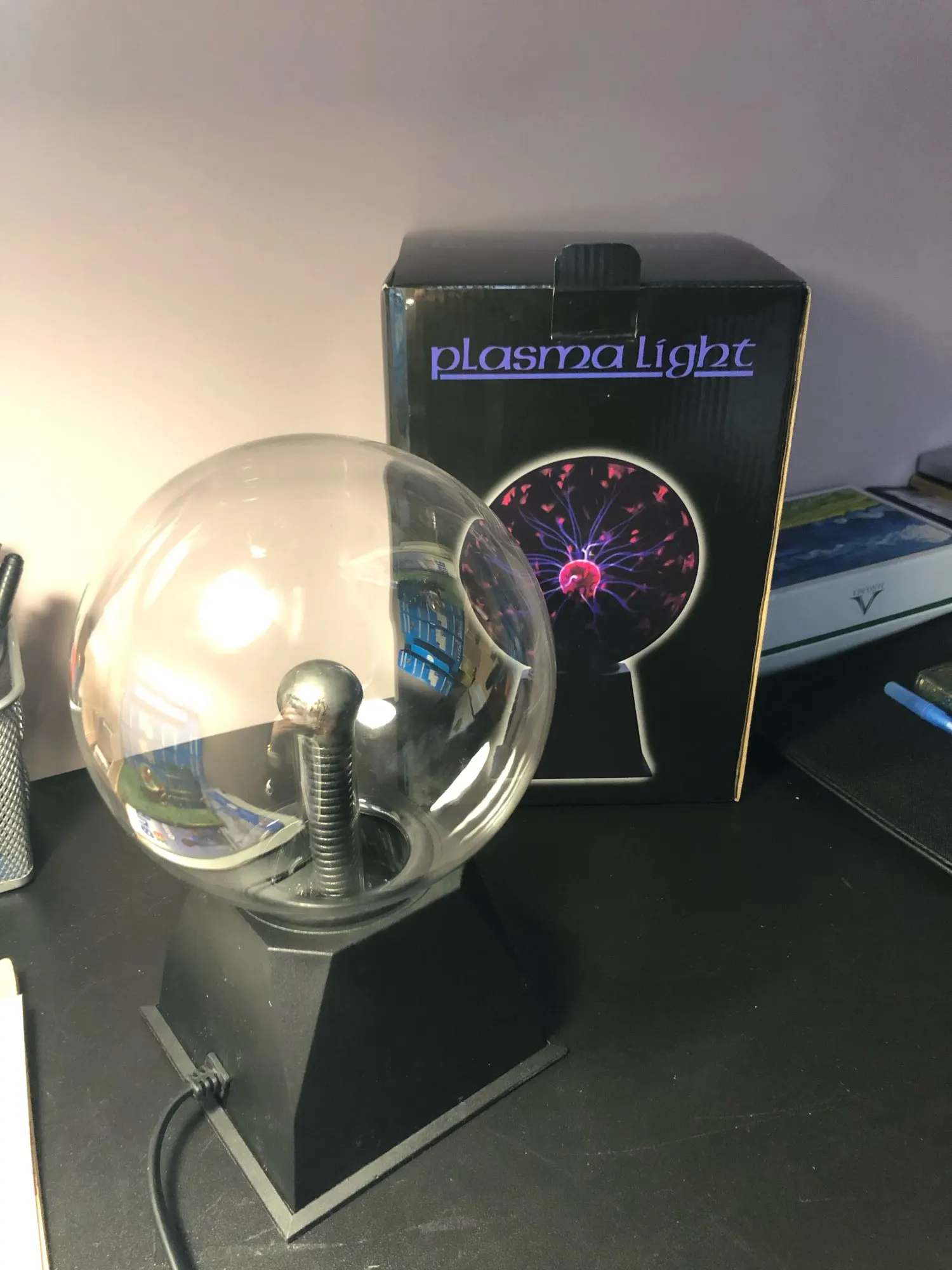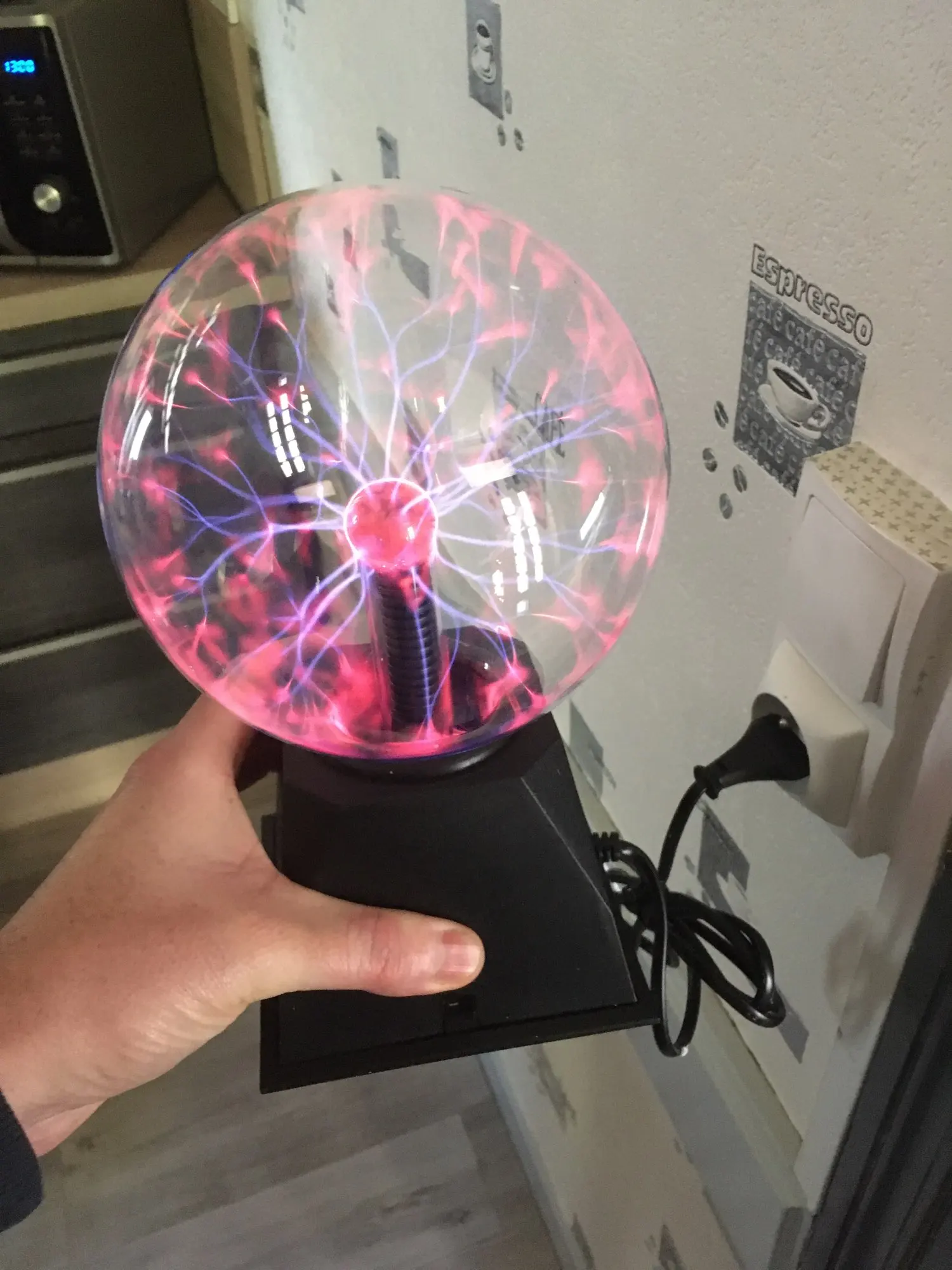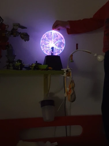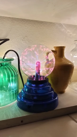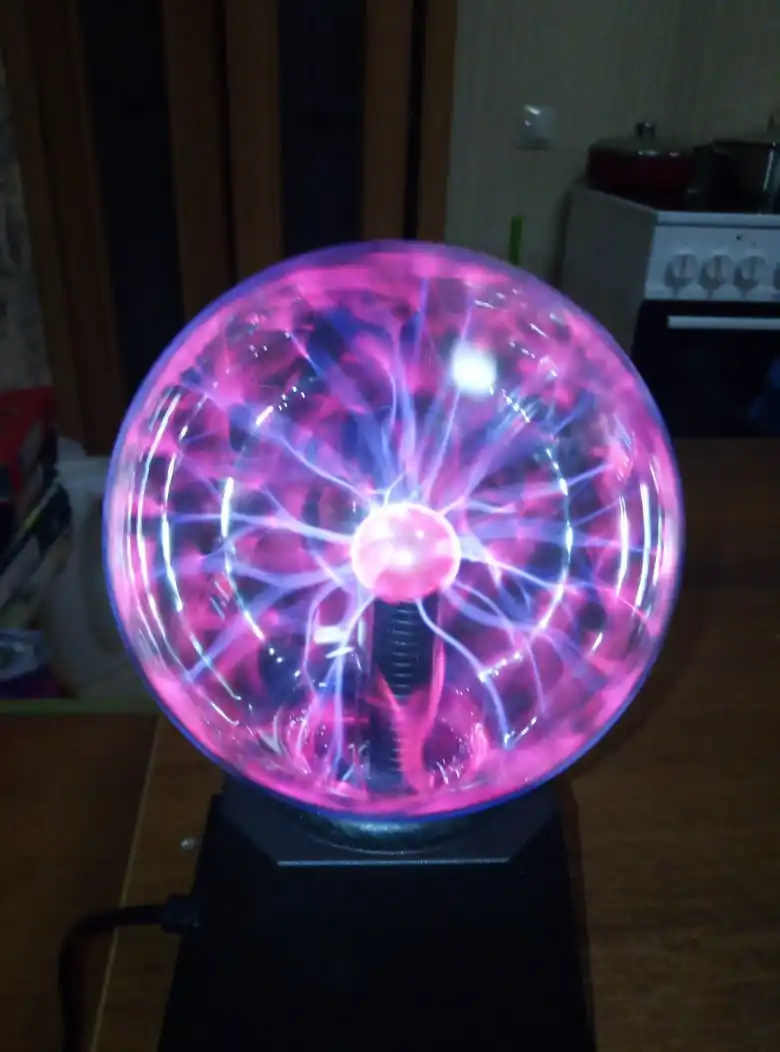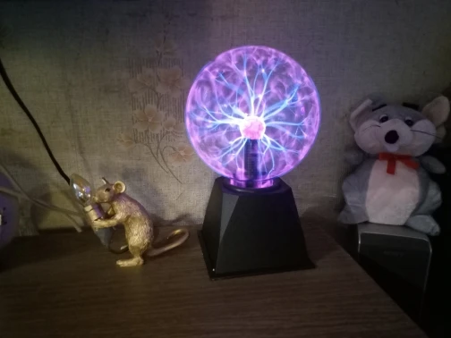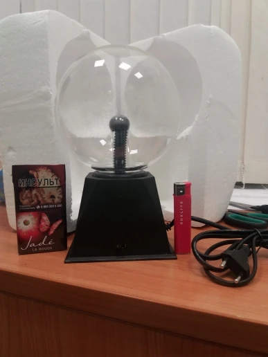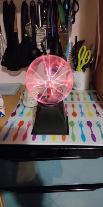 Плазменный шар круто выглядит, особенно в темноте, из минусов: подставка не качественная, хлипкая. Кому интересно - шарик мало весит 0.5 кг В целом хороший товар за свои деньги