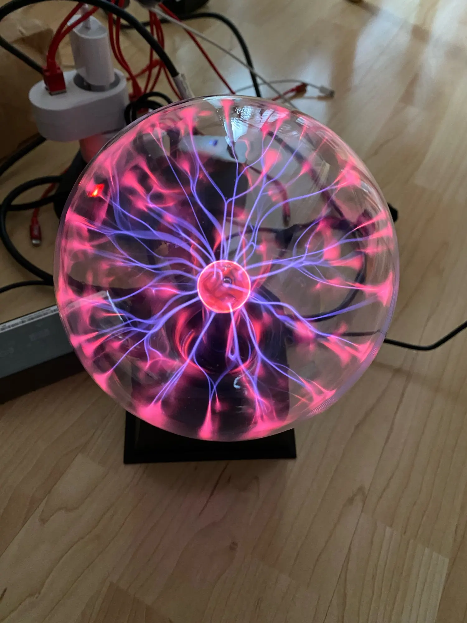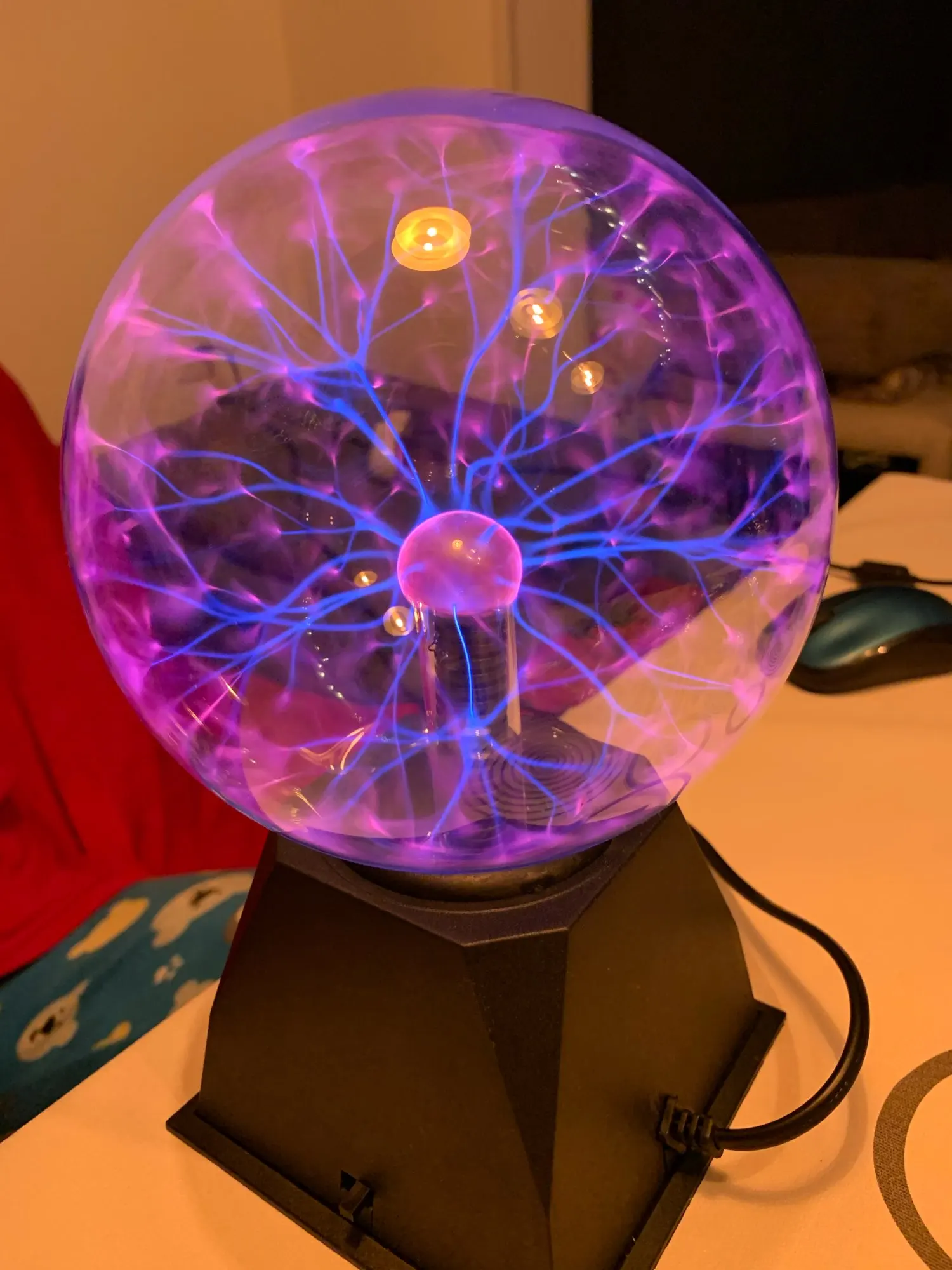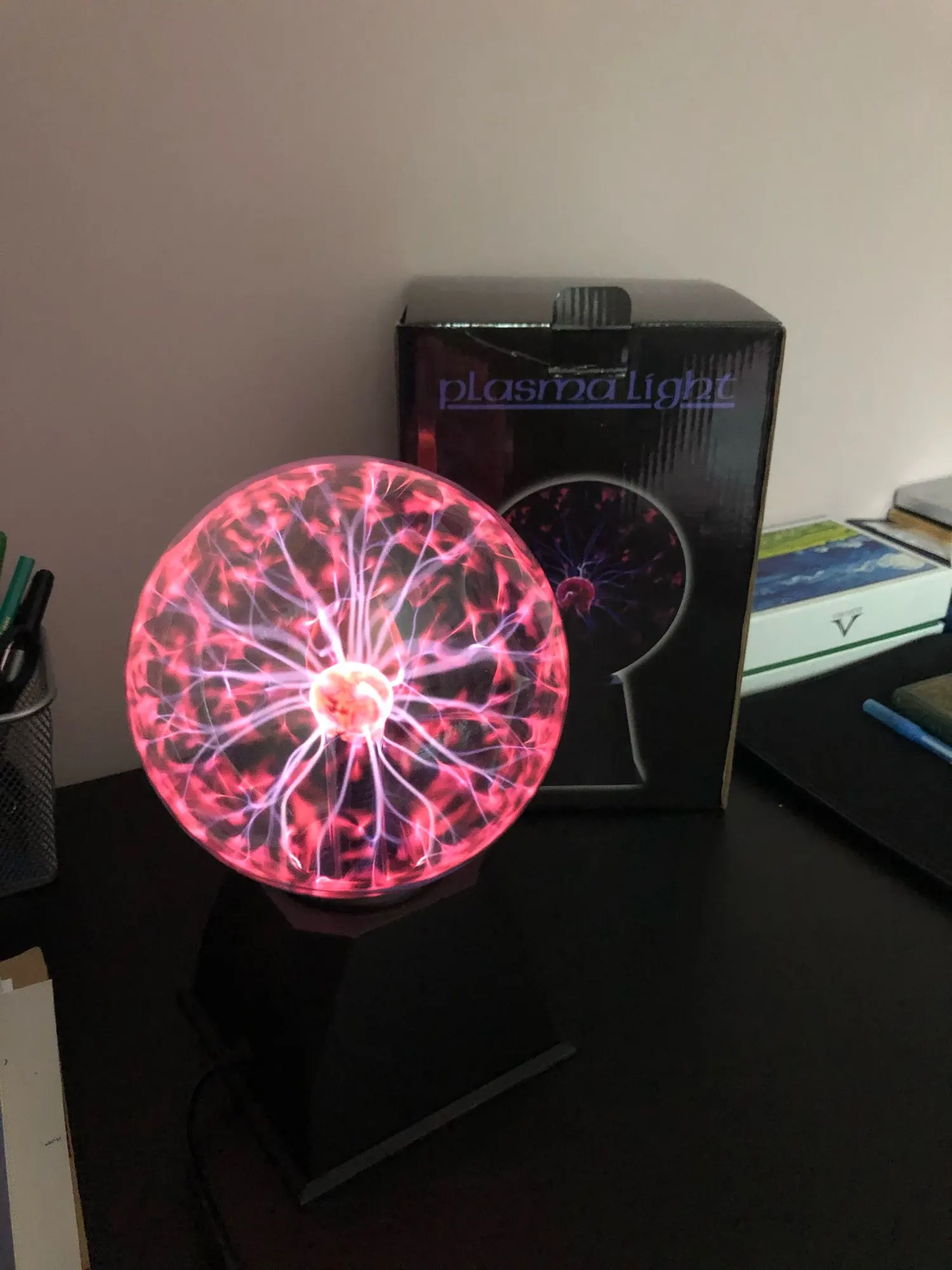 Плазменный шар круто выглядит, особенно в темноте, из минусов: подставка не качественная, хлипкая. Кому интересно - шарик мало весит 0.5 кг В целом хороший товар за свои деньги