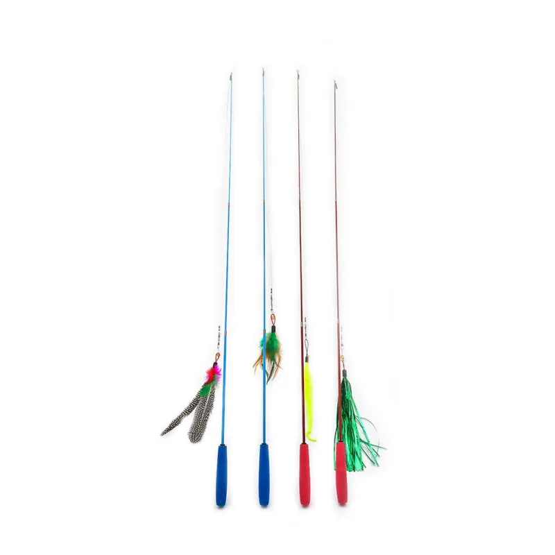 Палка телескопическая с перьями для домашних животных, кошачьи интерактивные игрушки, удочка-Дразнилка, палка для игр, товары для обучения кошек, Интерактивная палочка