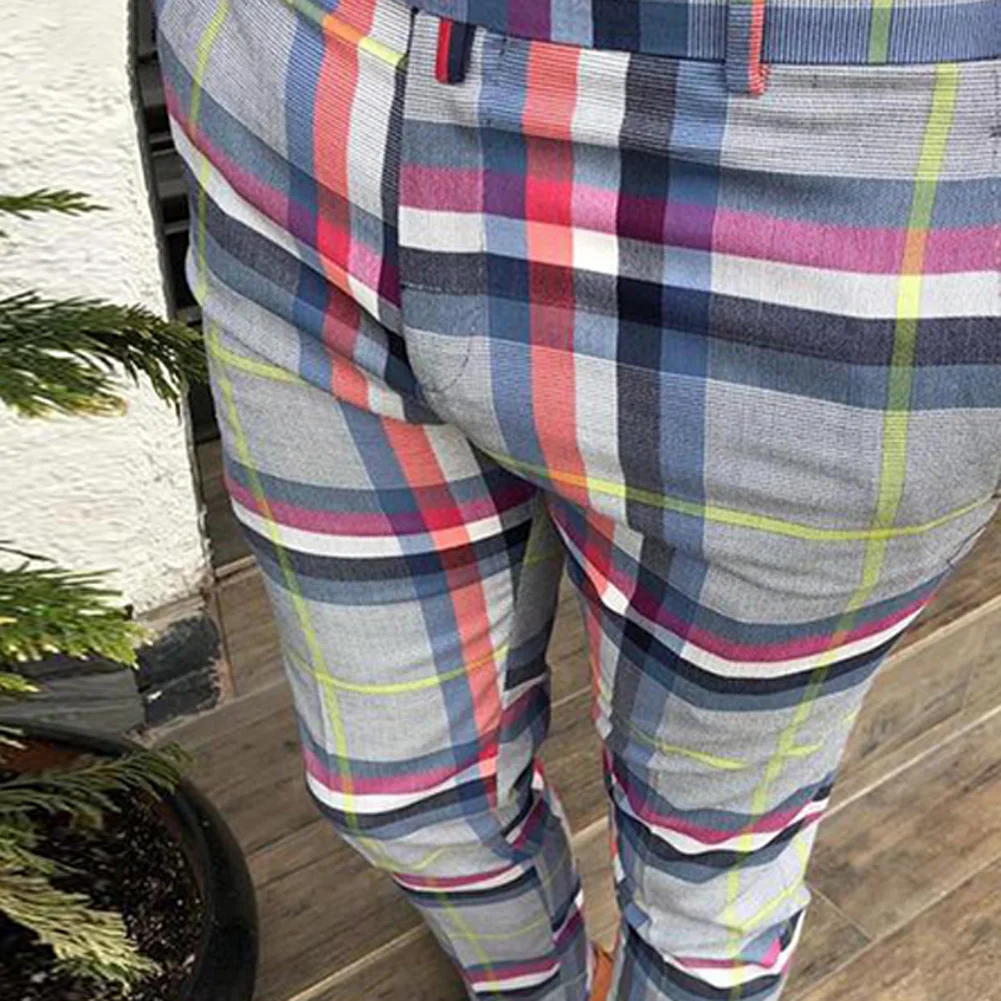 Мужские клетчатые брюки до щиколотки, повседневные штаны для бега в...