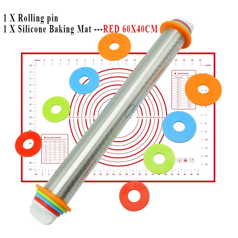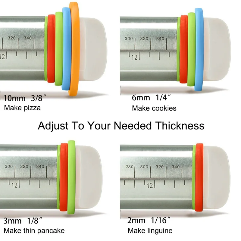 17 дюймов, регулируемый штифт для раскатки теста из нержавеющей стали с ковриком для теста, ролик для теста с 4 съемными регулируемыми толстыми кольцами