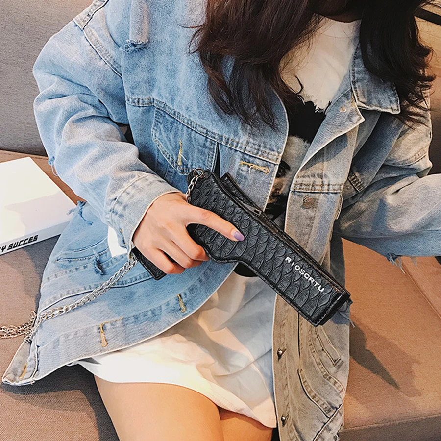 Fanny 3D цепи в форме пистолета, женские сумки на плечо, роскошная сумка через плечо из искусственной кожи, женские шикарные маленькие кошельки, клатч для девочек 2019