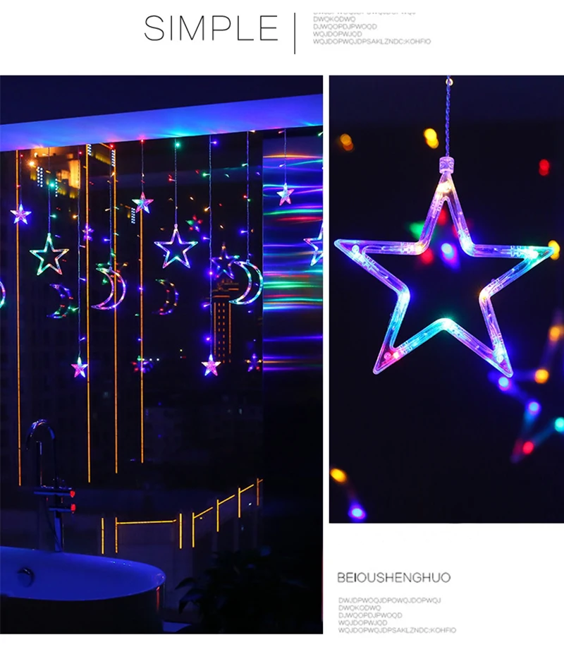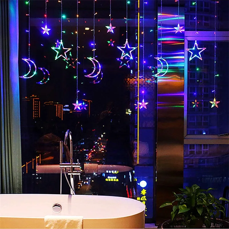 СВЕТОДИОДНАЯ Гирлянда-занавес в виде луны и звезд, 220 В