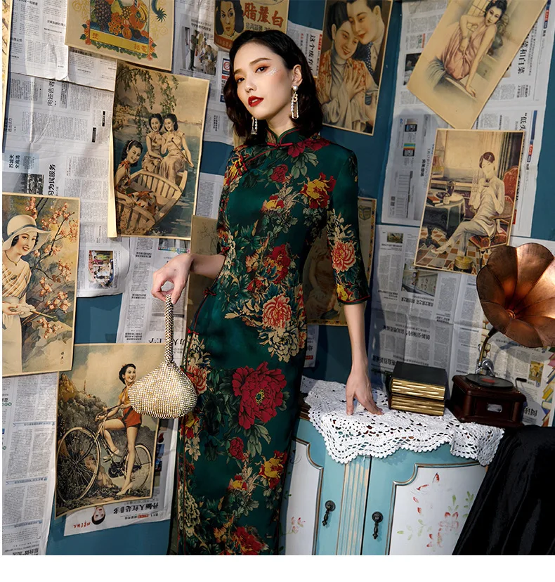 Sheng Coco, классическое шелковое китайское платье чонсам, длинные ...