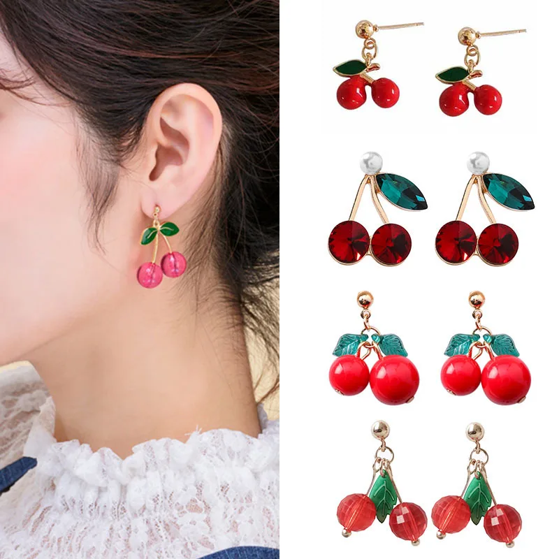 Висячие серьги в виде красной вишни для женщин, милые висячие серьги с фруктами, украшения для девочек, бижутерия