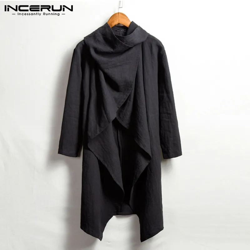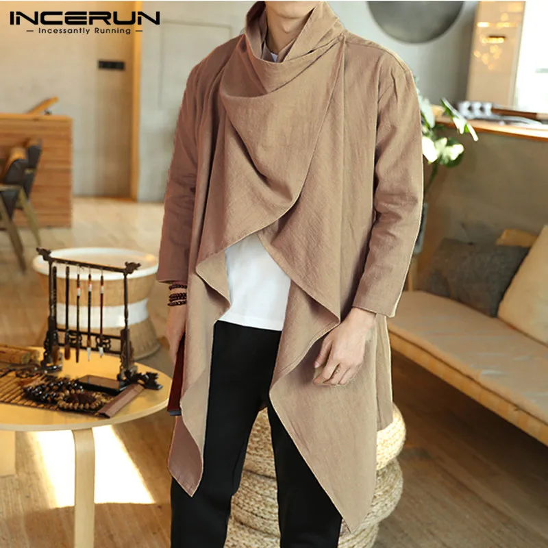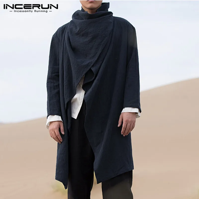 Тренчкот INCERUN мужской с длинным рукавом, хлопковый плащ-пончо с ...