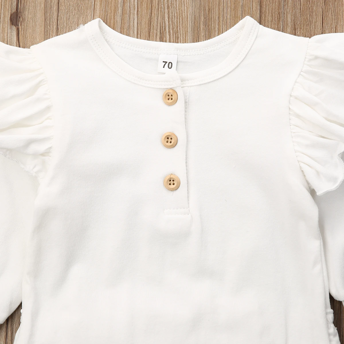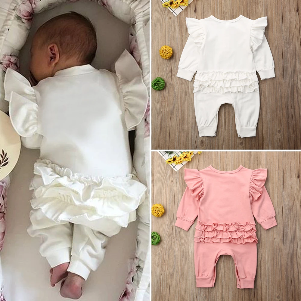 Осенне-зимняя одежда для новорожденных девочек, цельный комбинезон с длинным рукавом и оборками, комбинезон с рукавами-летучими рукавами, однотонные хлопковые наряды