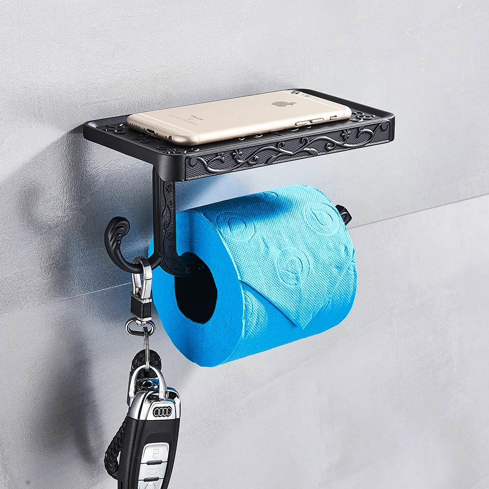 Держатель для туалетной бумаги, из цинкового сплава, с полкой мобильный телефон