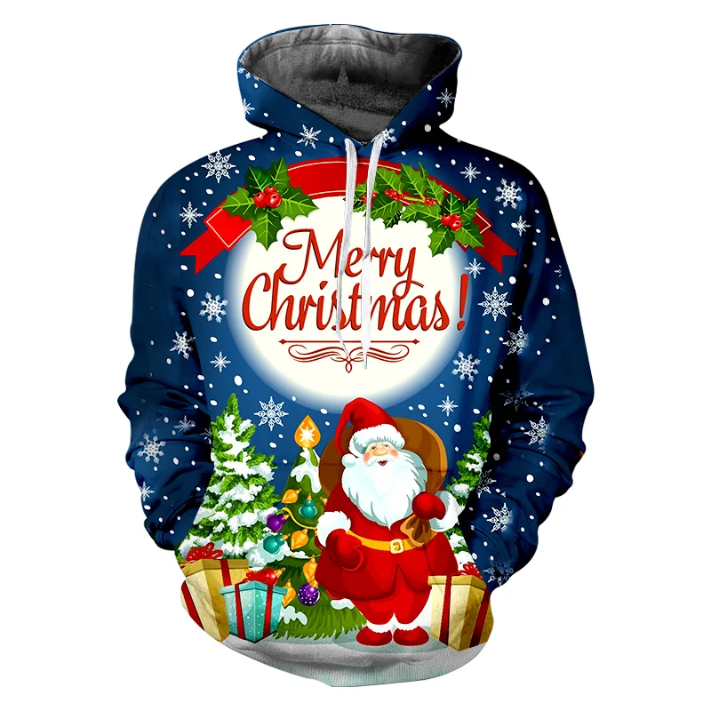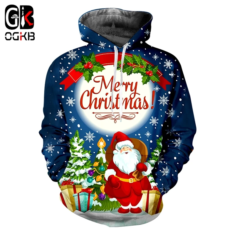 OGKB Мужская Рождественская одежда с 3D принтом с милым капюшоном Санта Клауса, мужской повседневный трендовый пуловер