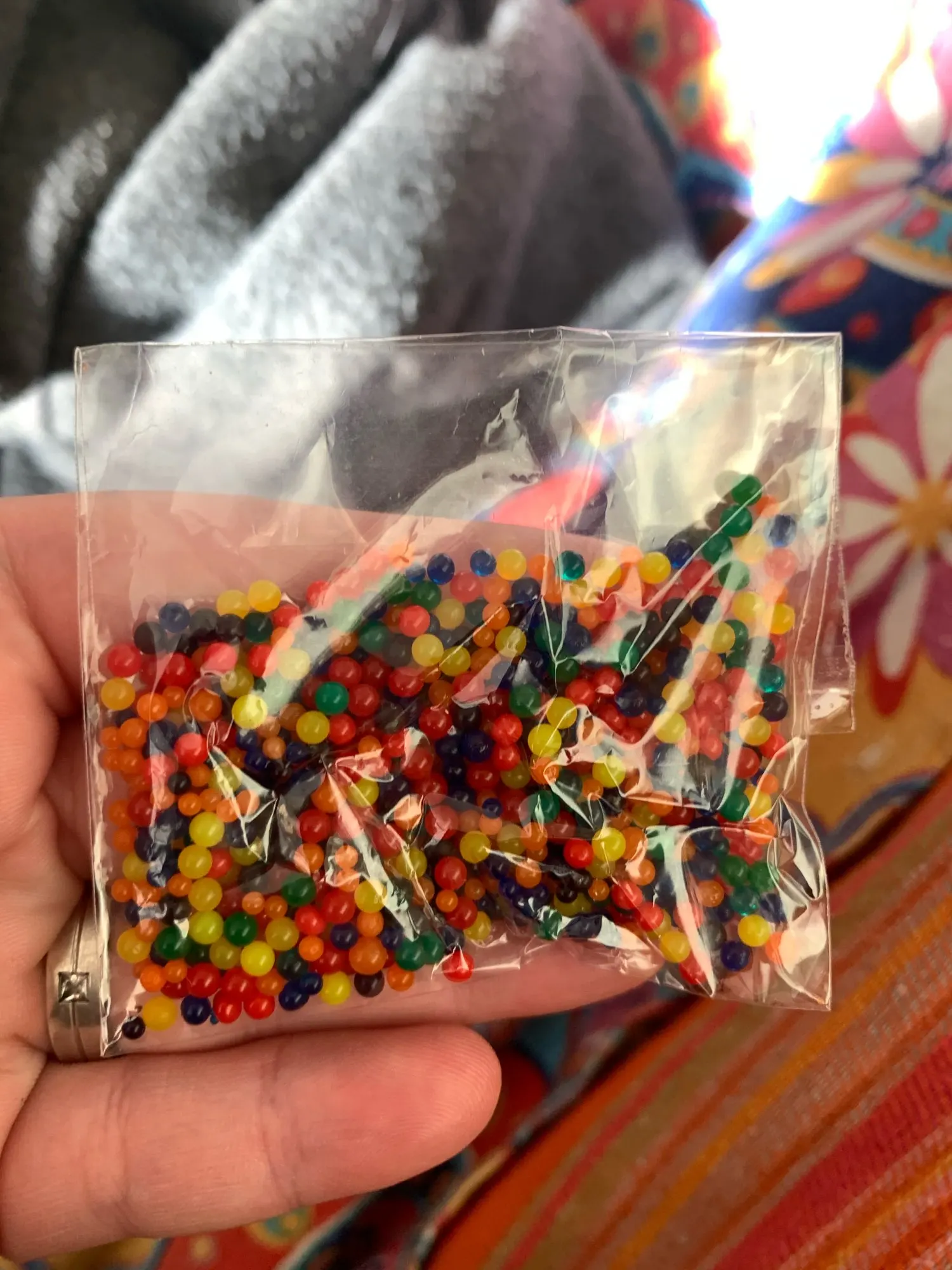 Это то, что они продают, гидрогелевые шарики, которые значительно увеличивают размер. Цвета больше, чем прозрачные, но ничего в другом мире. Они достигают примерно сантиметра. Я думал, что пришел еще, но когда я увидел описание, я увидел, что это правильно, я был неправильно.