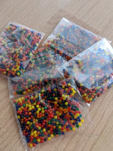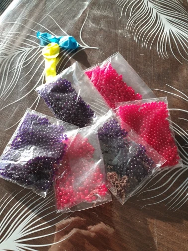 гидрогелевые шарики пришли в конверте с пузырчаткой пленкой за 2.5 недели. доставка в почтовый ящик. мелкие, прозрачные. бросила в воду 1/4 пакетика - по итогу получила 350 мл разбухших шариков. насыщенные шарики в размере 5-7 мм. лопнувших нет. Товар к покупке советую