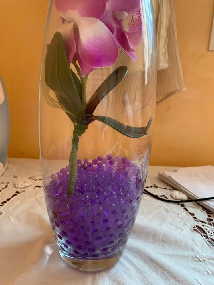 Очень нравится моей дочери, Я кладу его в воду, и он увеличивается в объемах и становится больше и блестит, но он очень хрупкий, не позволяйте ему носить детей, это опасно, это может повредить его или повредить естественные или искусственные растения c очень красиво