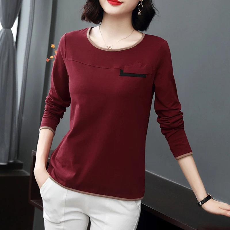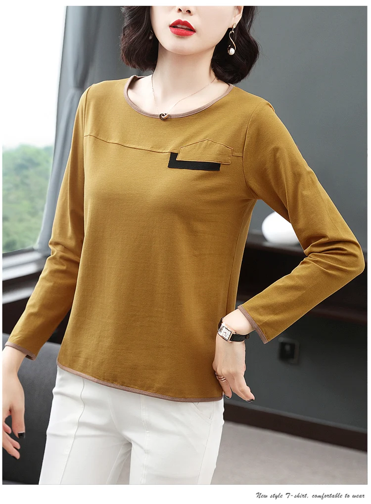 Футболка Хлопковая женская, с длинным рукавом, 2021, размера плюс, 4XL