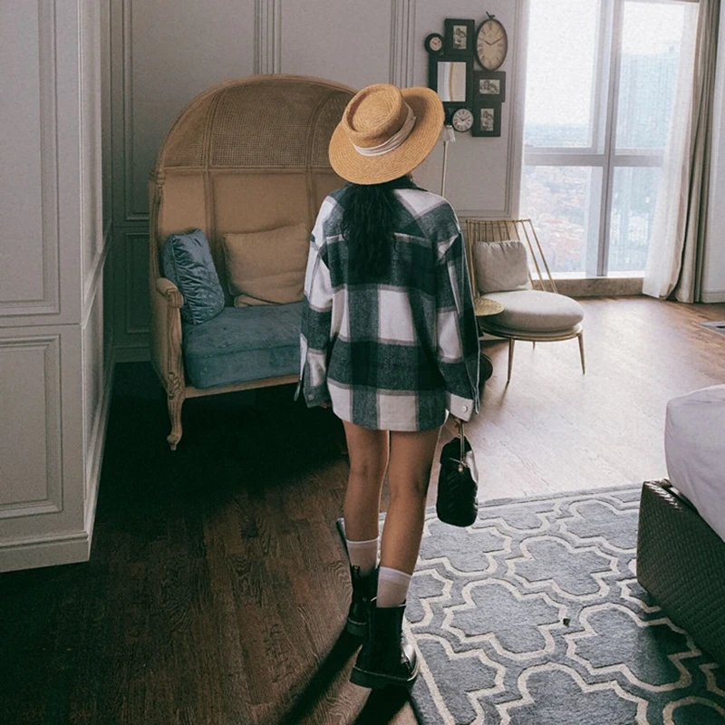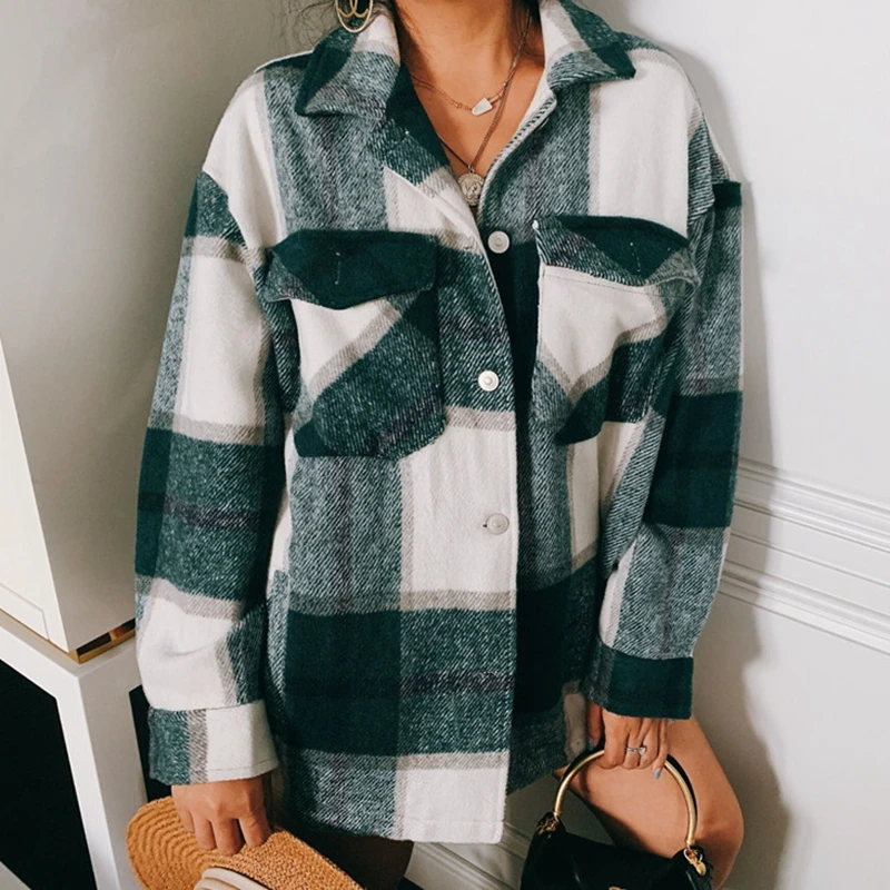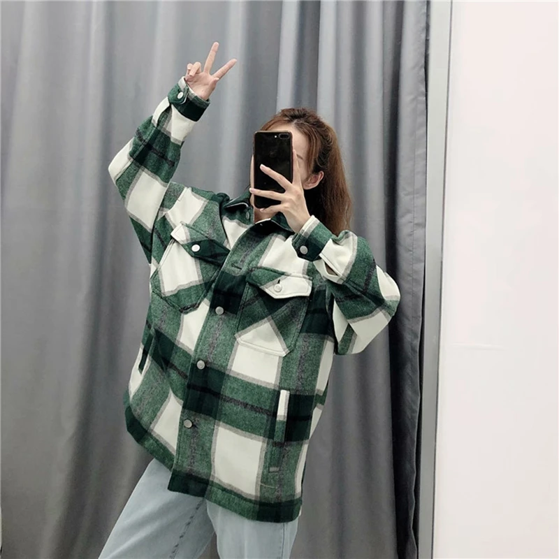 Женская клетчатая куртка, красная или зеленая куртка большого размера в Корейском стиле, для осени и зимы
