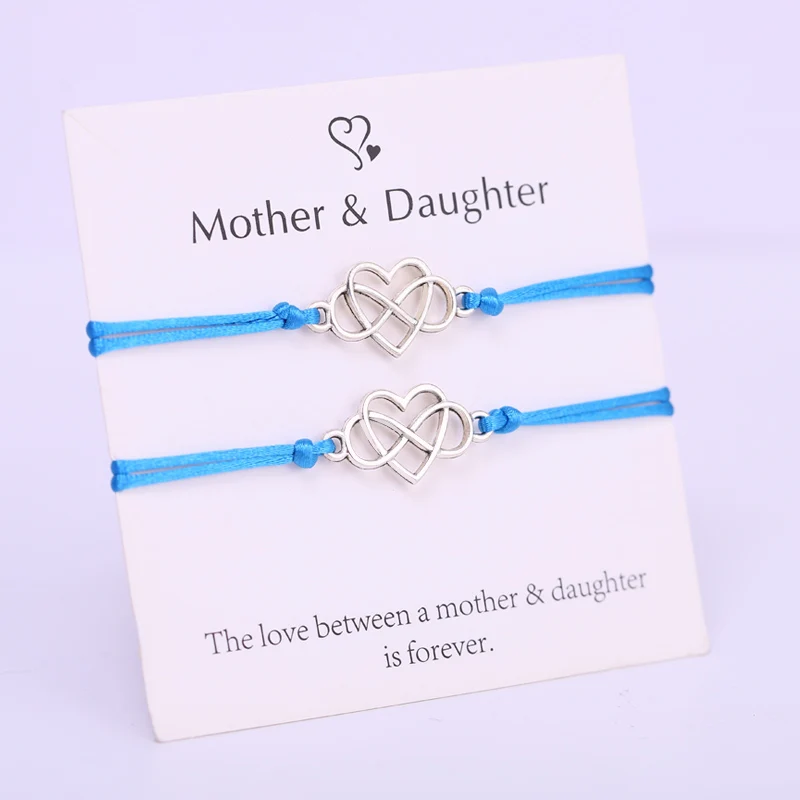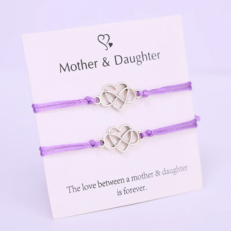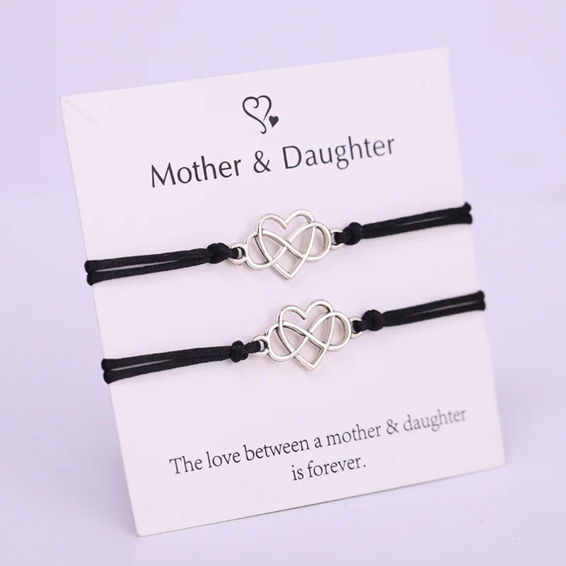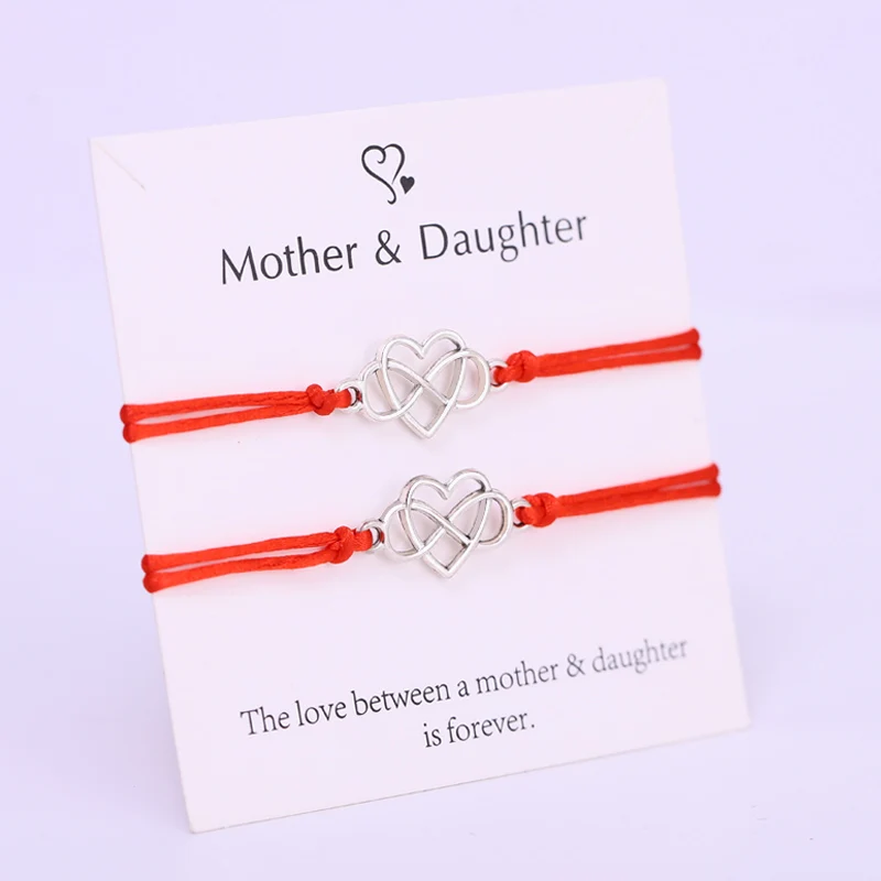 (Комплект) браслеты для мамы и дочки, браслеты в форме сердца, регулируемый веревочный браслет, модные ювелирные изделия для женщин и девочек, Прямая поставка