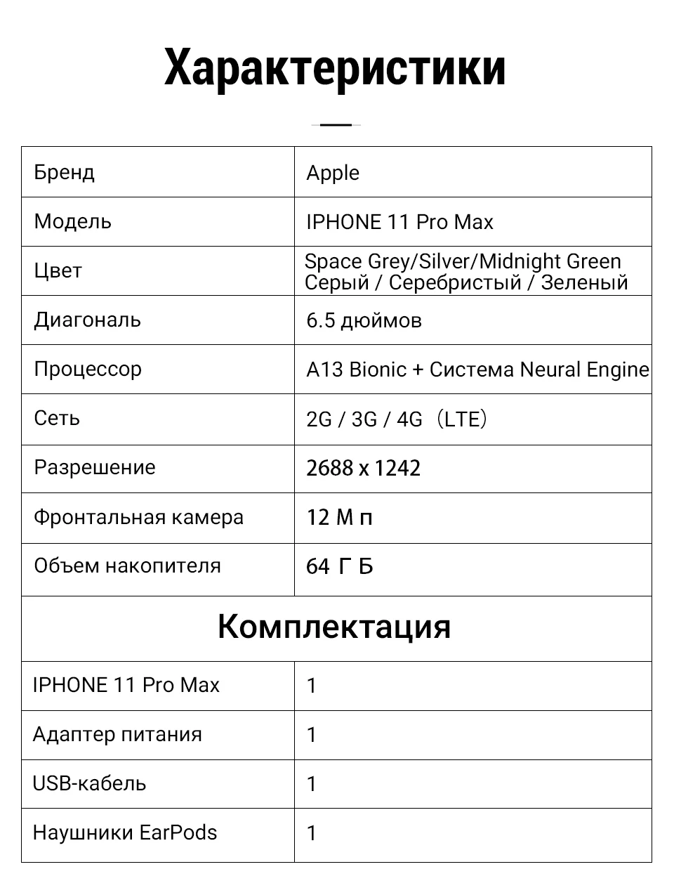 Смартфон Apple iPhone 11 PRO MAX 64ГБ Айфон 11 про макс 6.5 дюймов с тремя камерами мощный аккумулятор видео 4K гарантия