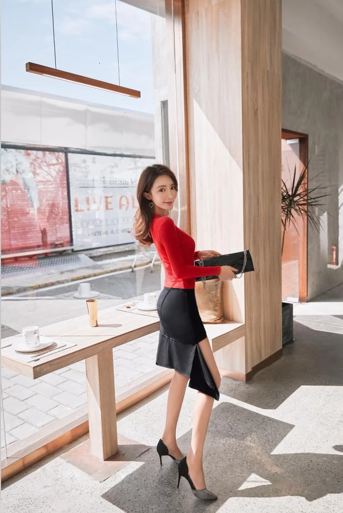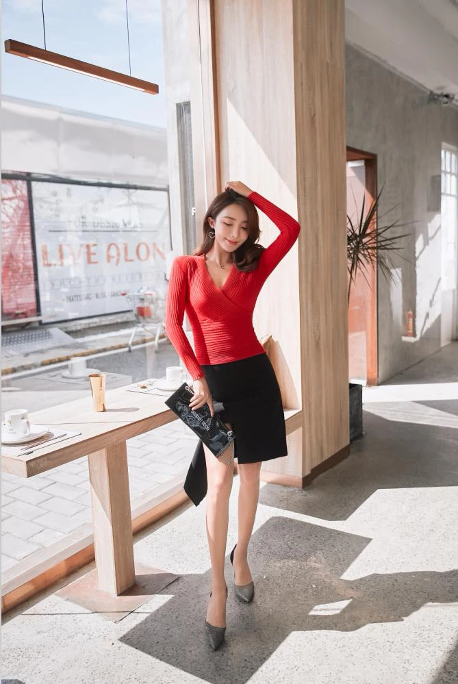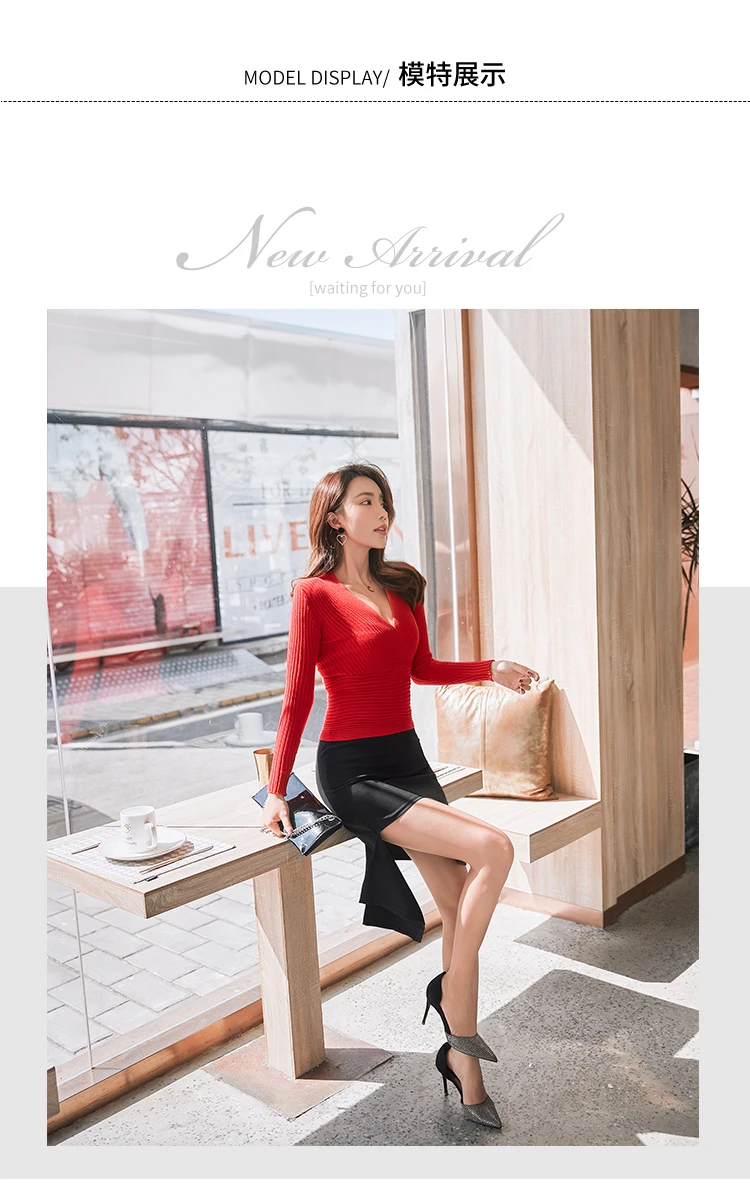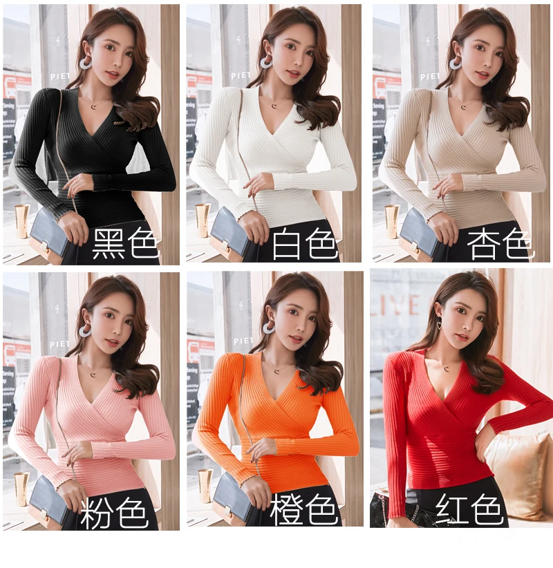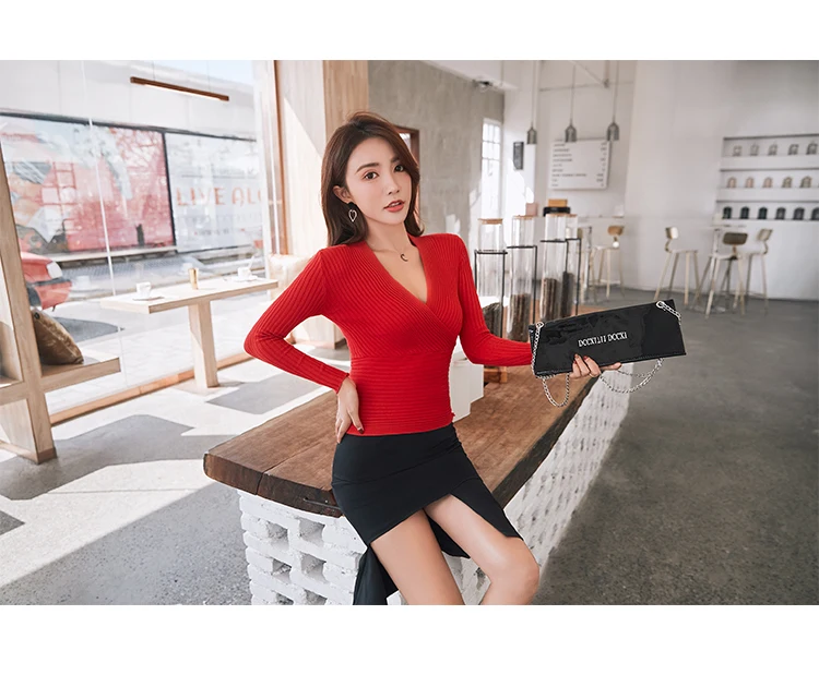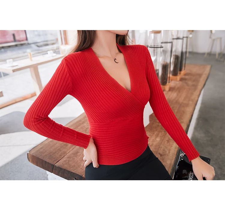 Женский трикотажный свитер, пуловер с низким вырезом, эластичный, Осень-зима, 2020