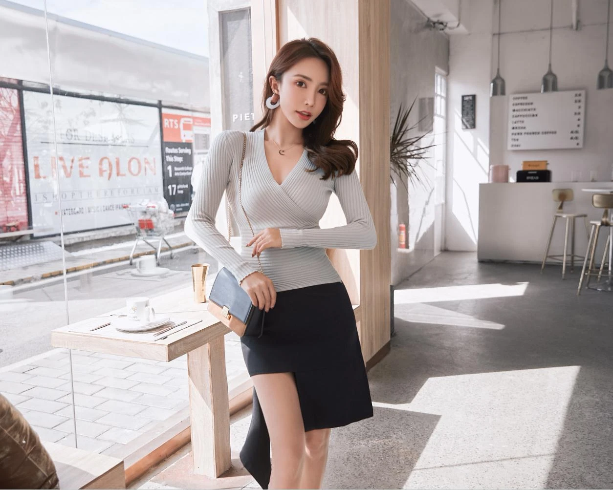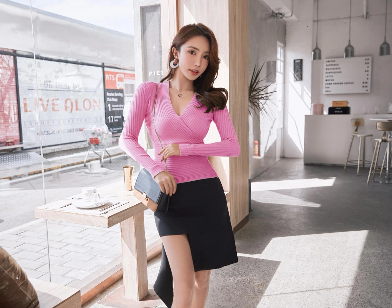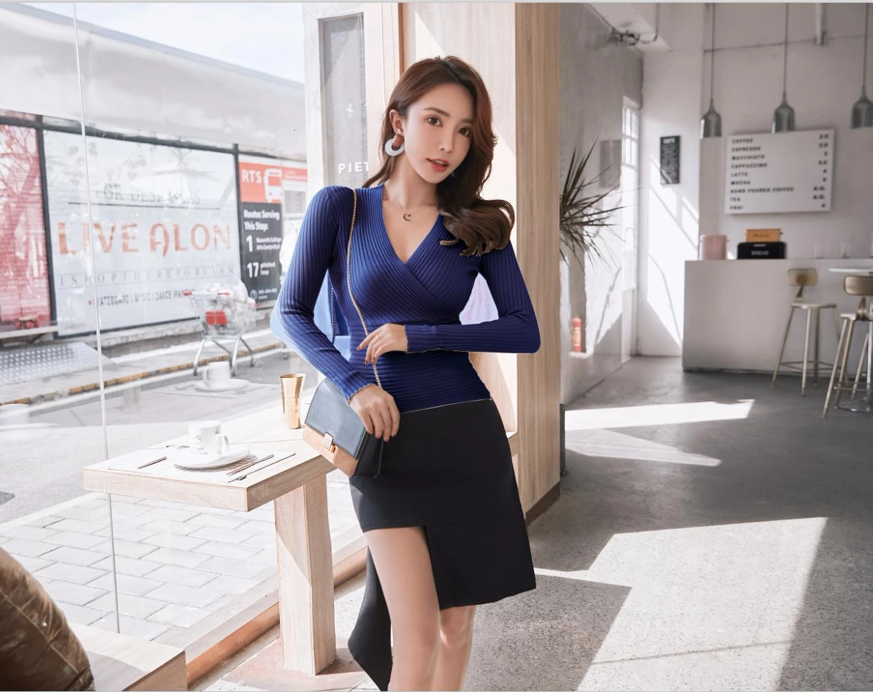 Женский трикотажный свитер, пуловер с низким вырезом, эластичный, Осень-зима, 2020