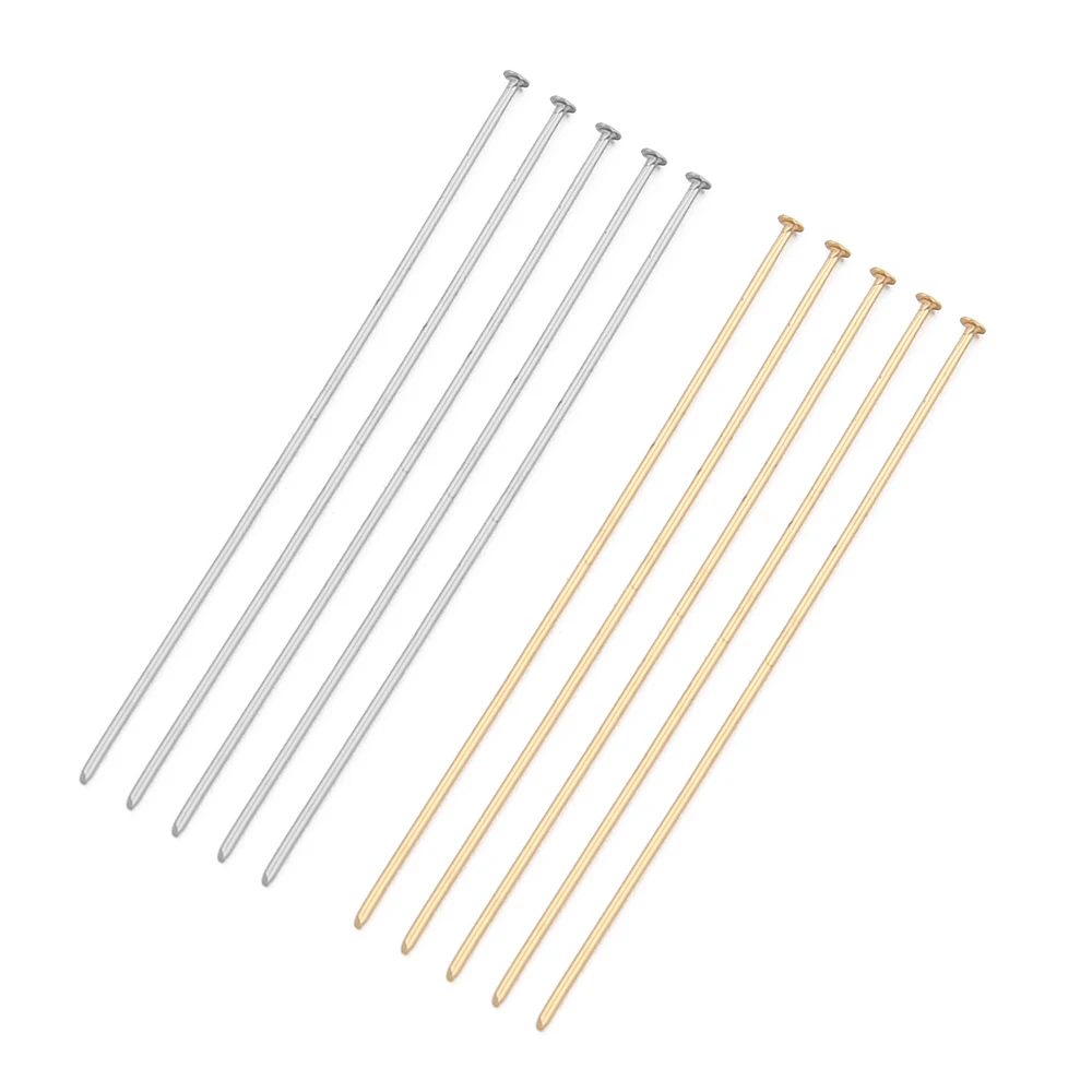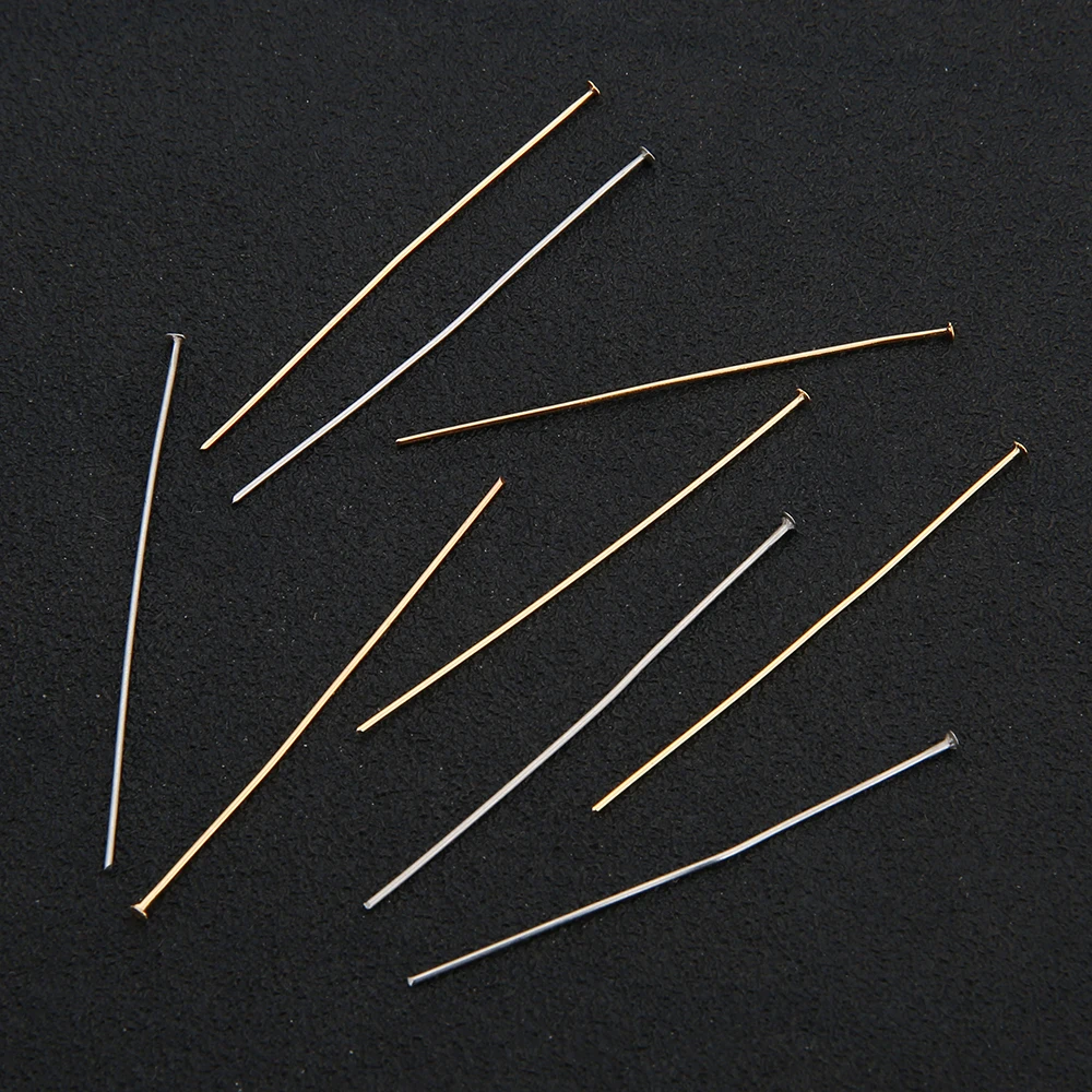 Штифты из нержавеющей стали с плоской головкой для серег иглы, комплект из 100 шт., цвет серебристый, золотой, 15, 20, 25, 30, 35, 40, 45, 50 мм, калибр 21