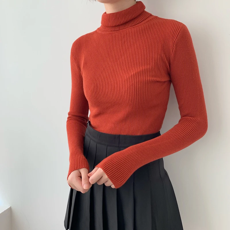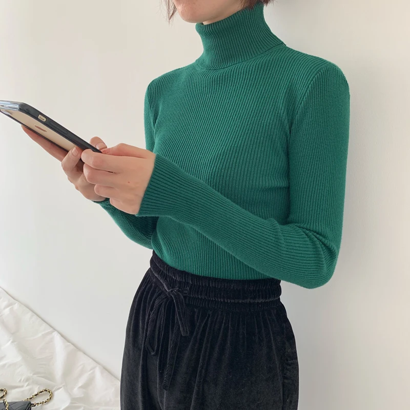 Свитер женский трикотажный, с высоким воротом, зима 2020