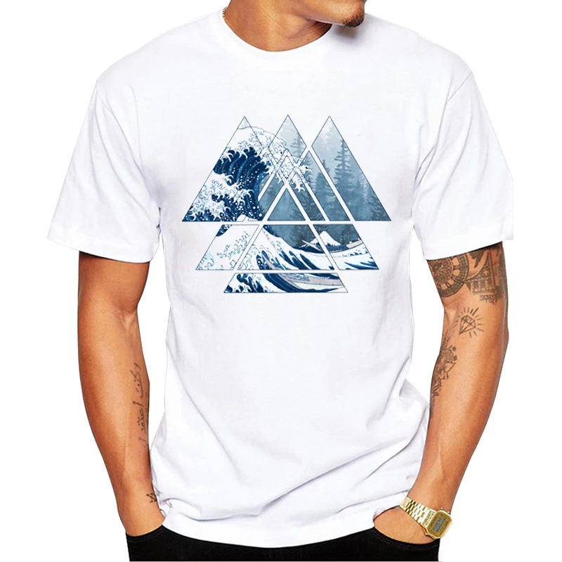 Мужская футболка с принтом в виде треугольников, с круглым вырезом и коротким рукавом