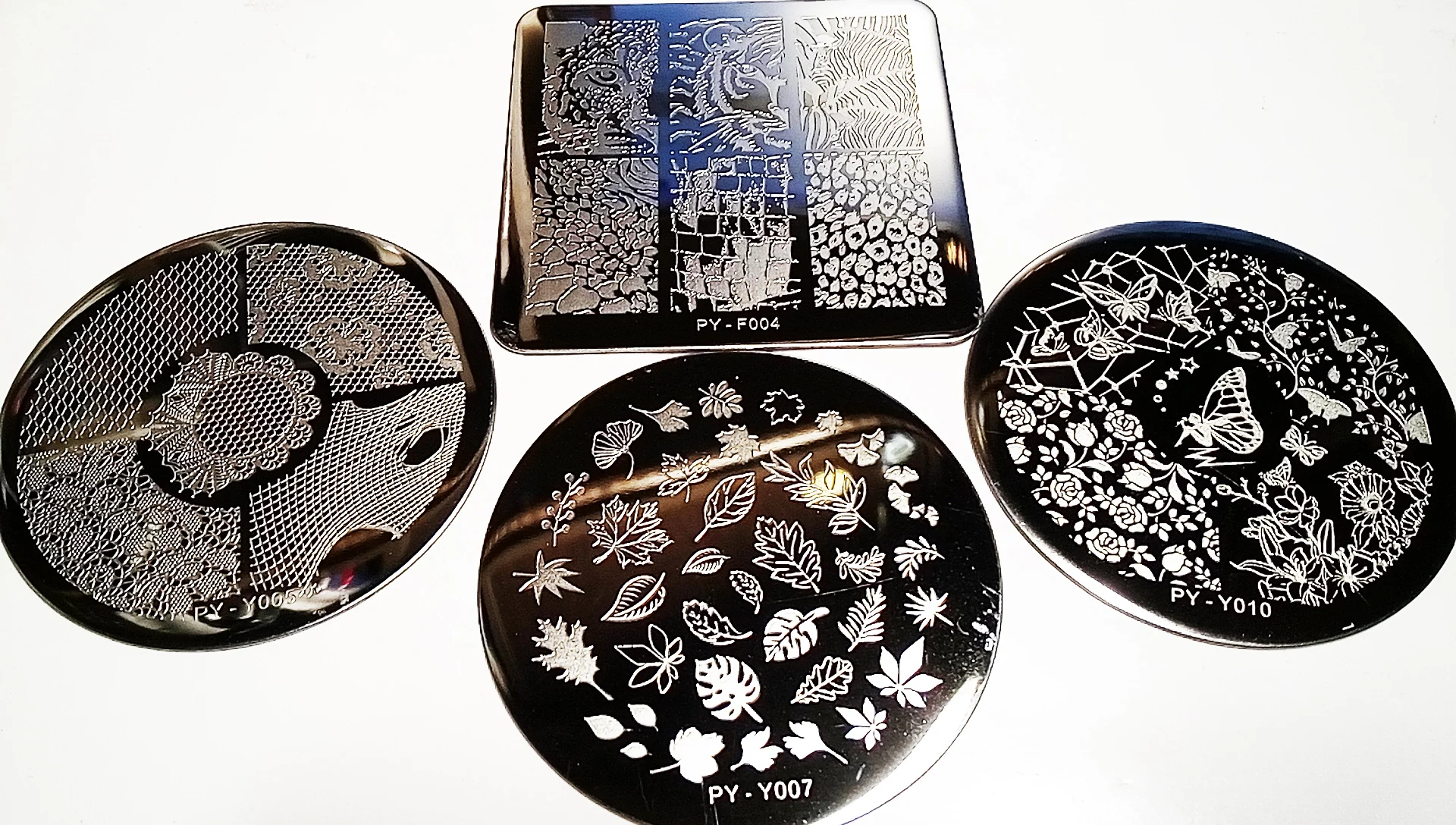все пластины красивые, гравировка неглубокая, линии тонкие, с лаком для стемпинга работают