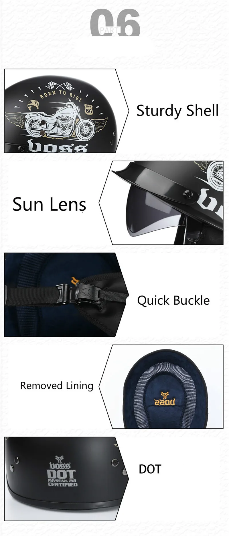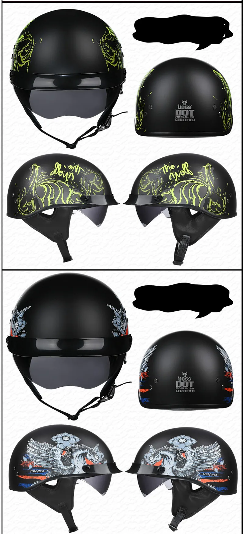 Мотоциклетный шлем, черный, винтажный, открытое лицо, одобрено Dot, Половина шлема, ретро, мотоциклетный шлем