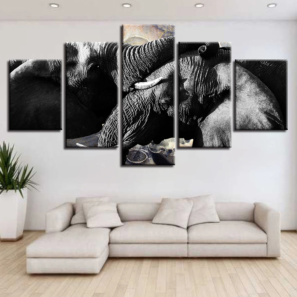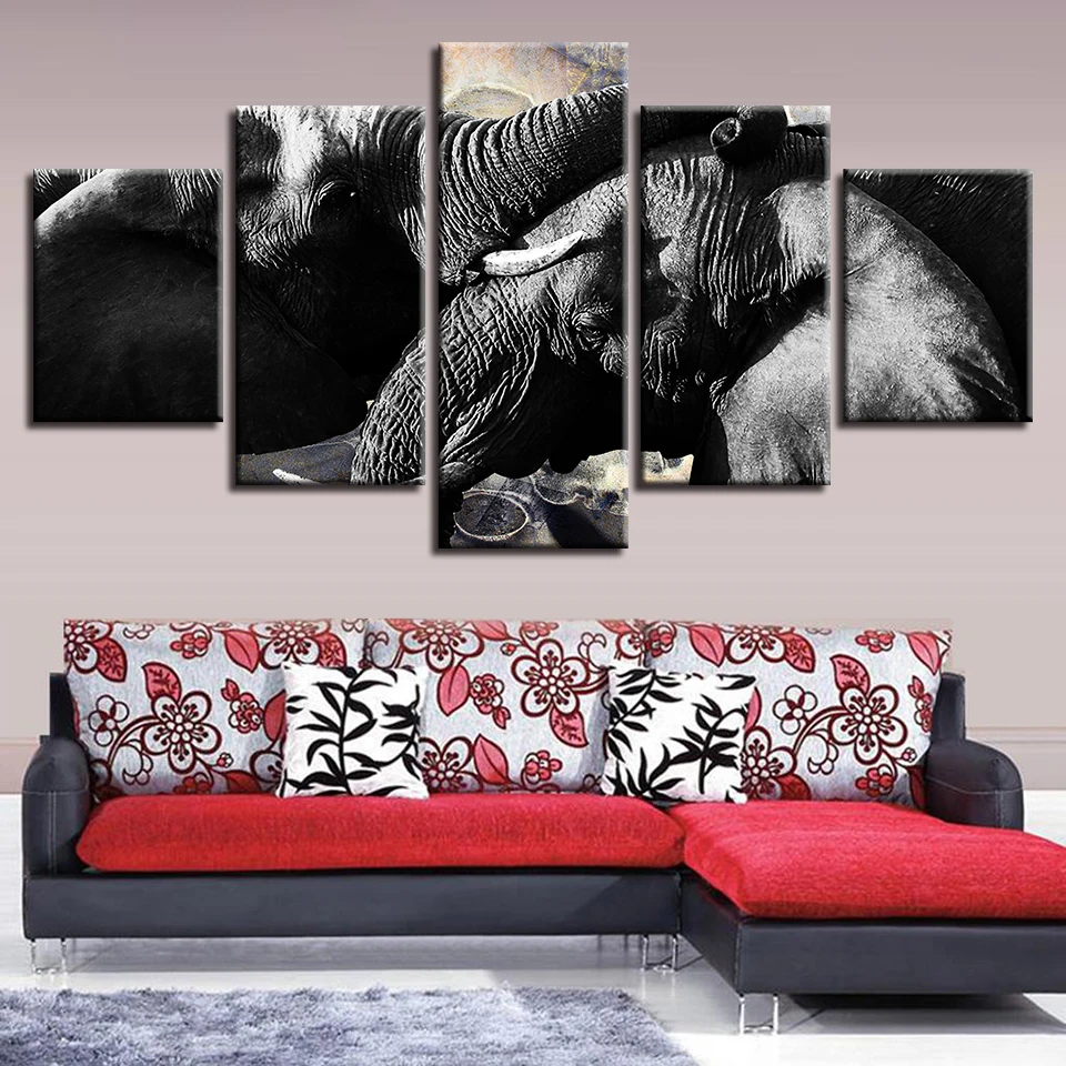 Черно-белая картина Арт Декор Гостиная стены 5 шт. HD Печать Животные картины со слонами кадров модульная холст Плакаты
