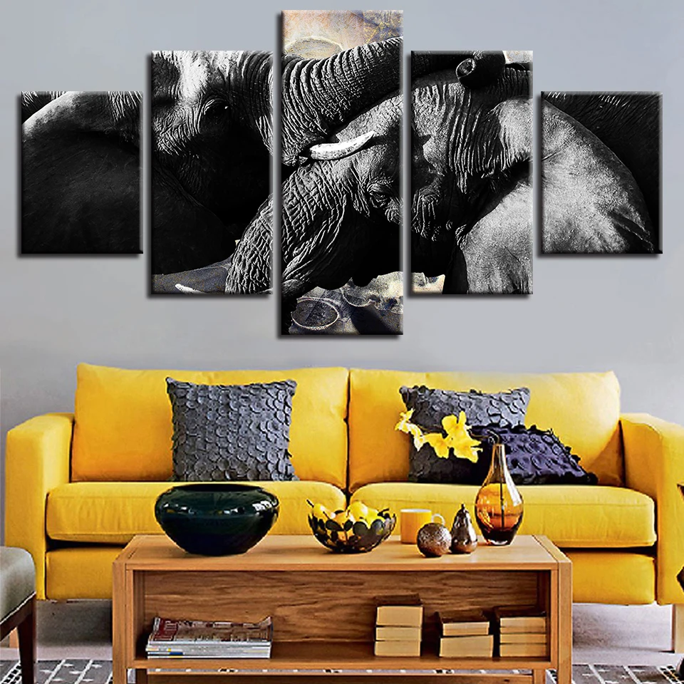 Черно-белая картина художественный Декор стены гостиной 5 шт. HD Печать животные картины со слонами рамки модульный Холст Плакаты