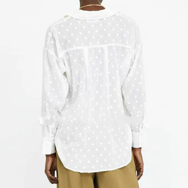 Женская прозрачная блузка в горошек, свободная белая блузка с длинн...