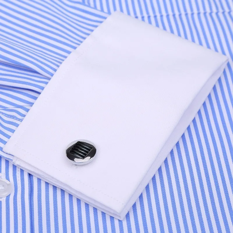 Мужская рубашка в полоску, с длинным рукавом, с запонками