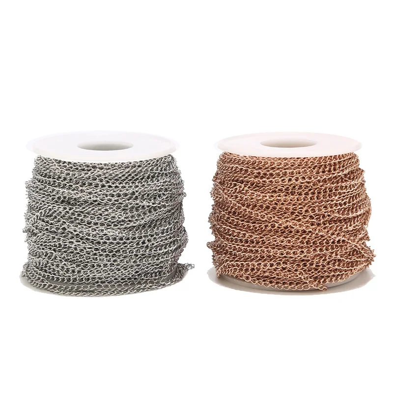 2 метра припаянная удлиняющая цепочка из нержавеющей стали, удлинитель колье золотого и розового золота, цепочки для самостоятельного изготовления ювелирных украшений