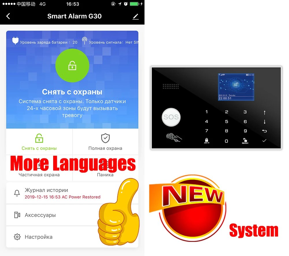 Эта система сигнализации поддерживает переключение на 11 языков: английский/русский/испанский/немецкий/Польский/китайский/итальянский/французский/португальский/Греческий/Румынский