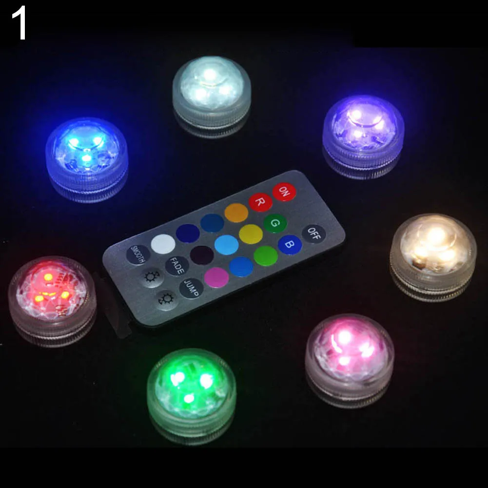 Водонепроницаемый светодиодный светильник с дистанционным управлением, меняющая цвет, свеча, атмосфера, круглые погружные аквариумные лампы