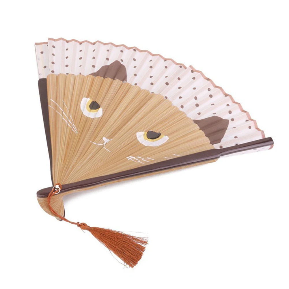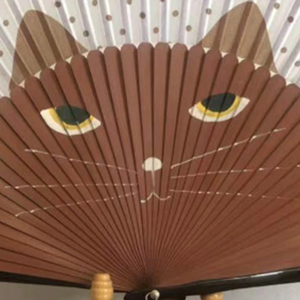 Складной веер с рисунком кошки, танцующий, складной Ручной Веер, подарок для рукоделия, оригинальный деревянный ручной цветок, бамбуковый веер для домашнего декора, праздничные изделия