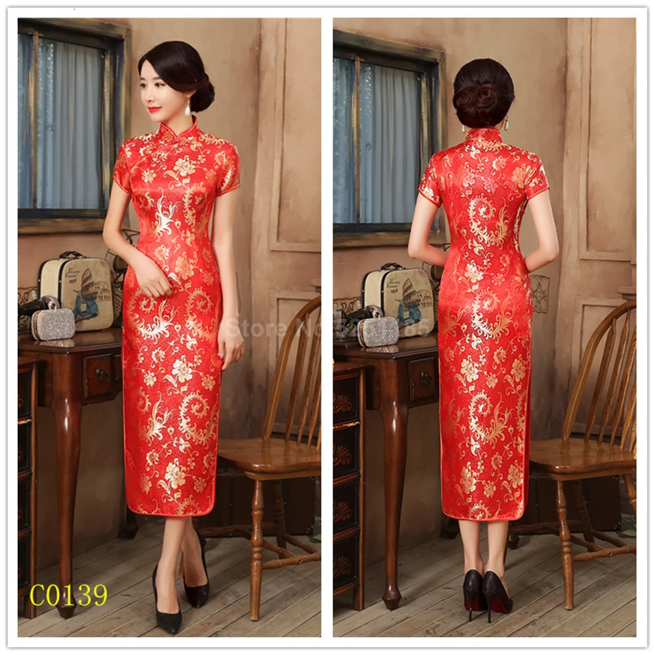 Женское атласное свадебное платье, длинное платье Ципао в китайском стиле, с красным принтом, для нового года, выпускного вечера, 17 видов цветов