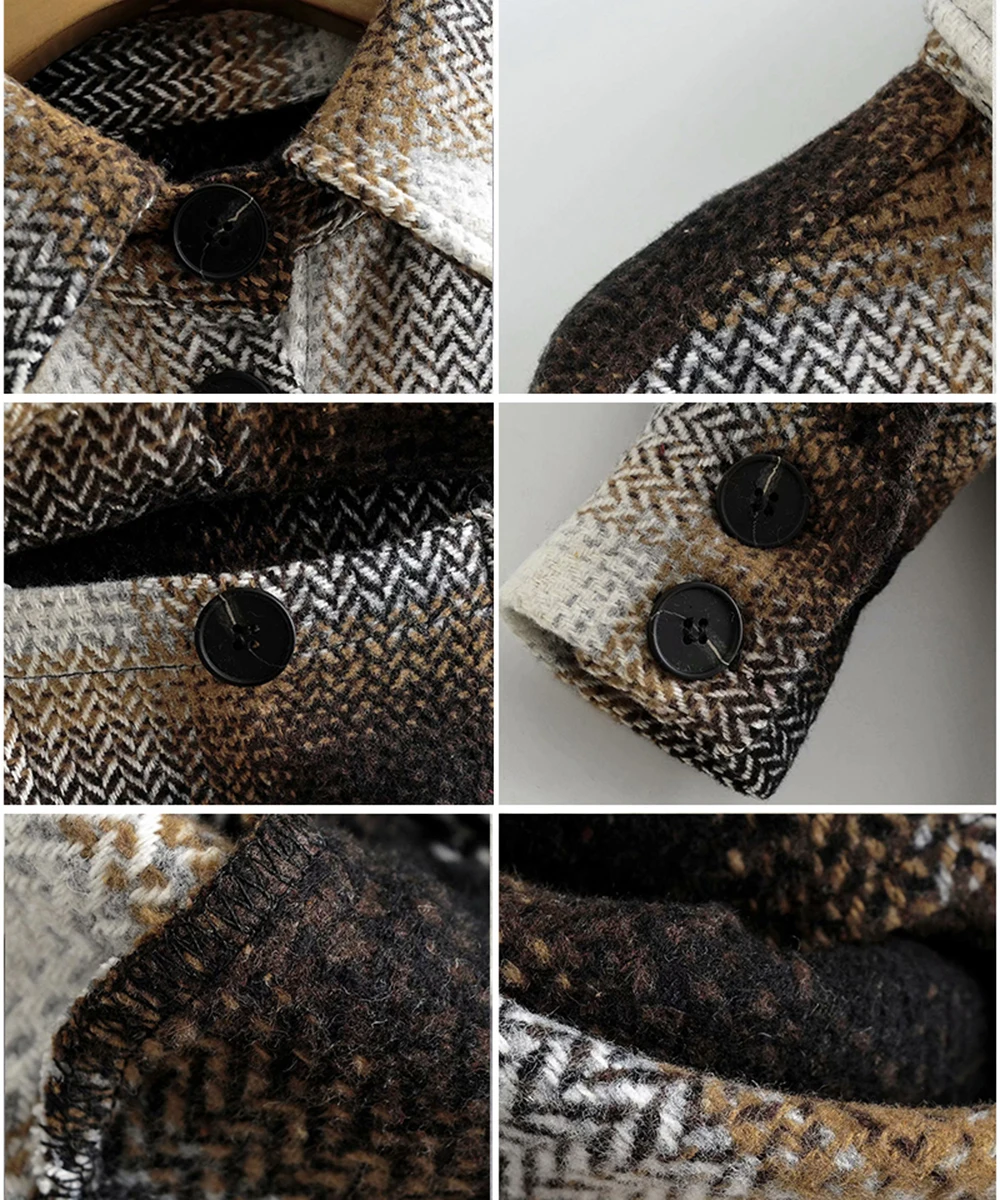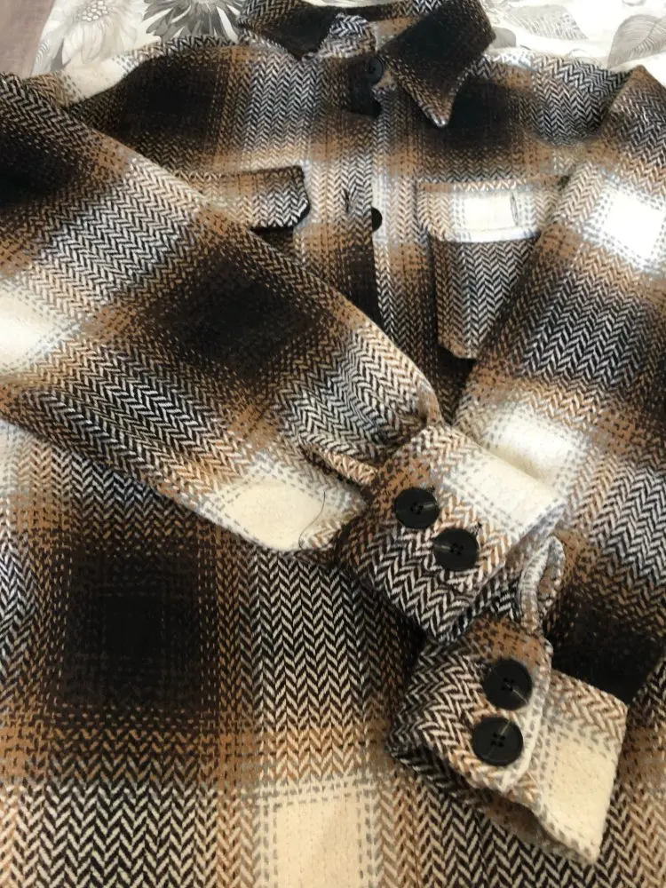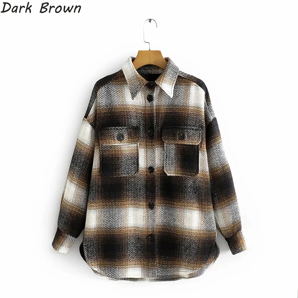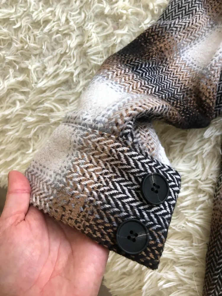 Пальто женское Шерстяное, с длинным рукавом, в клетку, в винтажном стиле, 2021