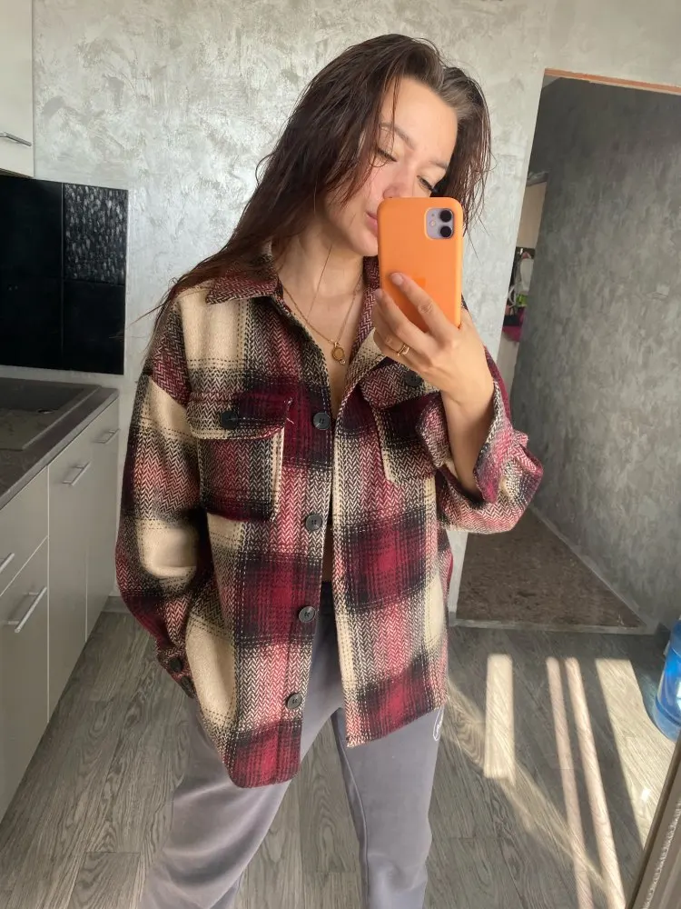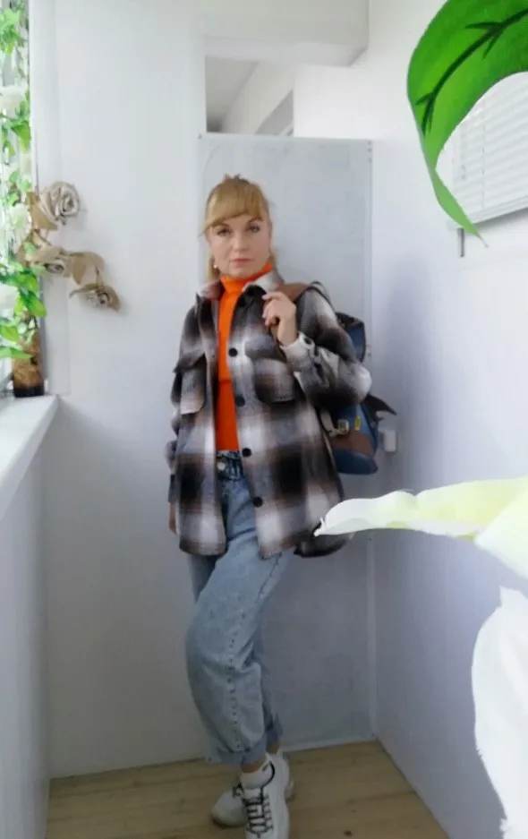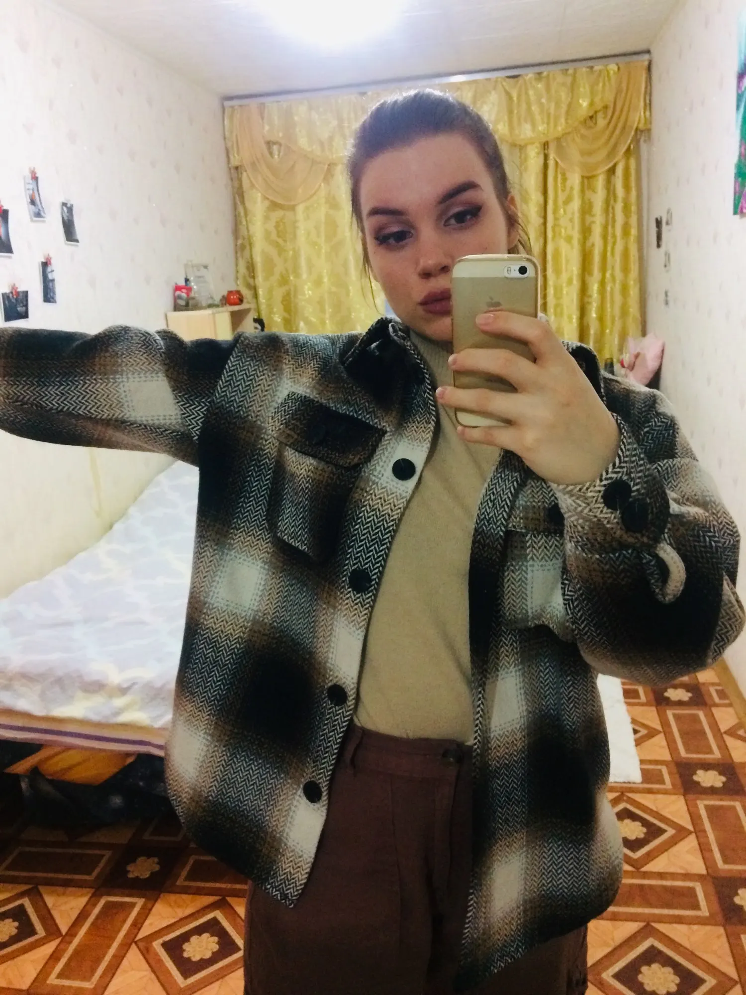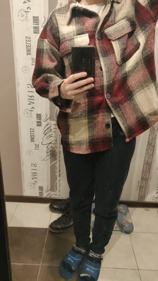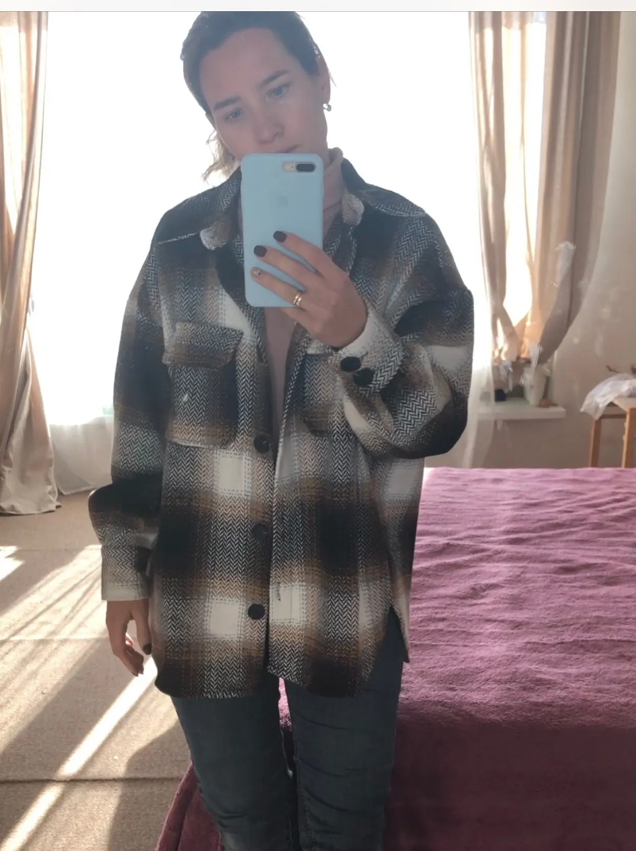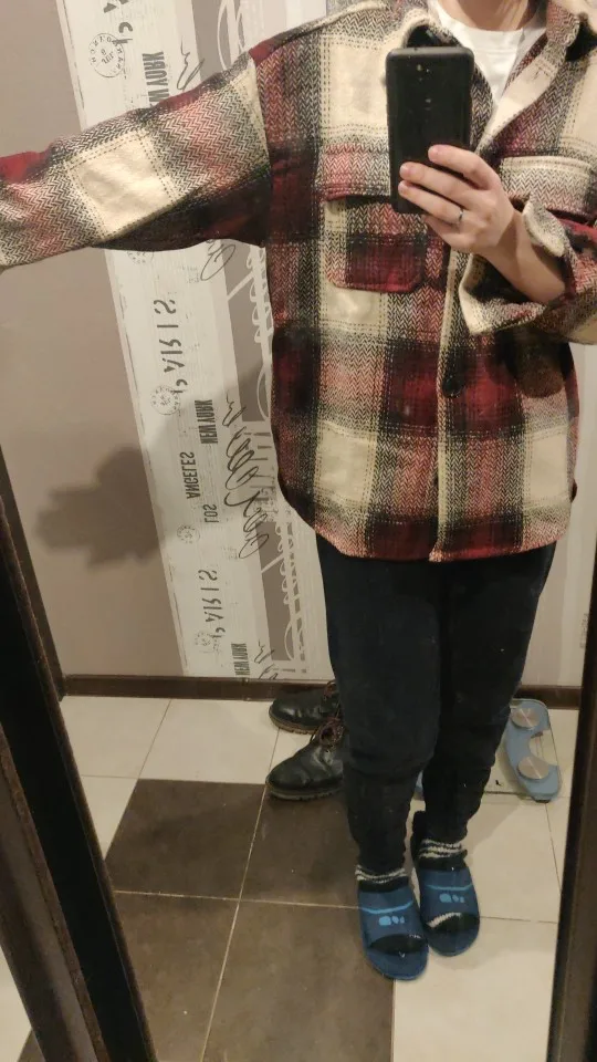 Куртка-рубашка классная, но я ошиблась с размером)) для полного оверсайз нужно было купить xl. Качество отличное, ощущение что в составе есть шерсть. Без подклада, но тёплая. Фото а разным освещением