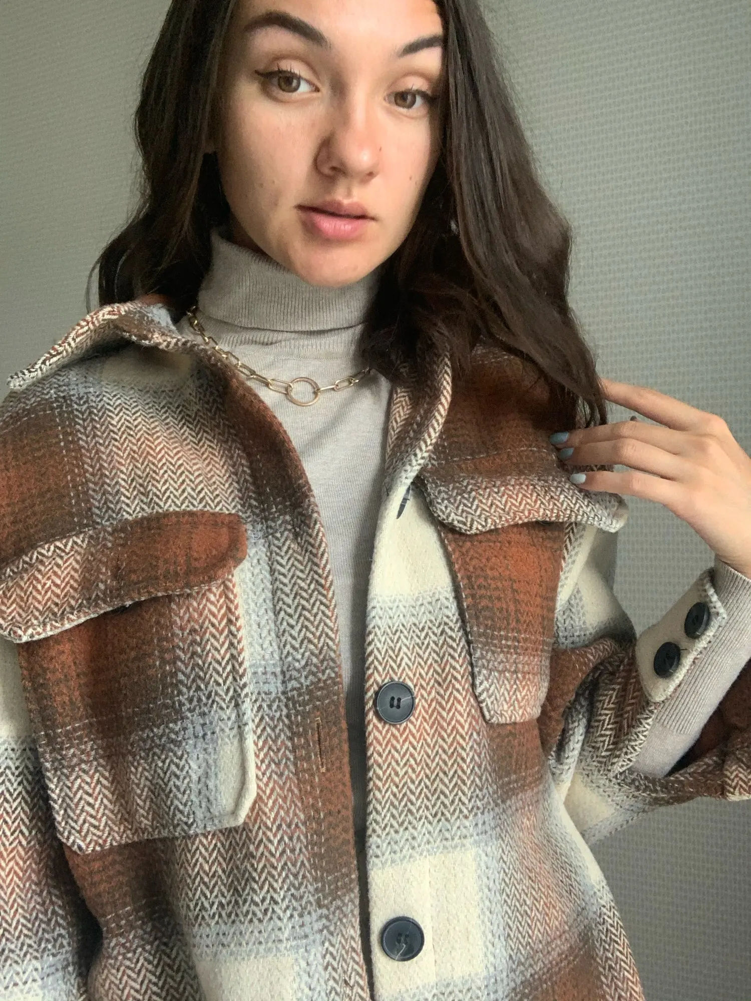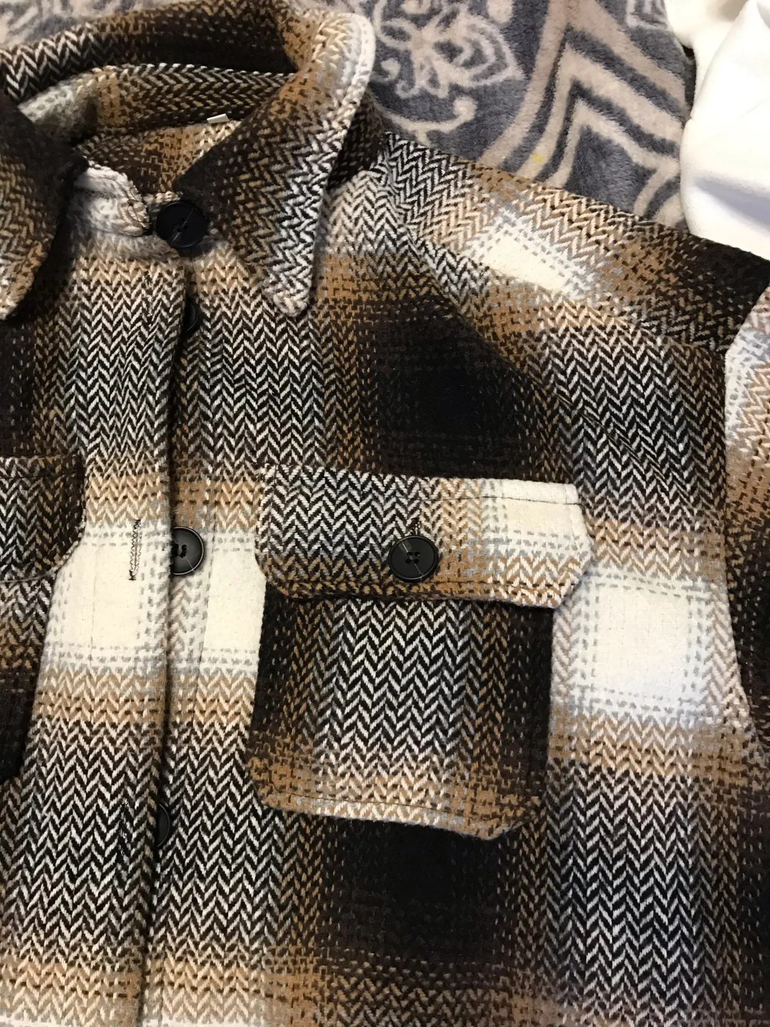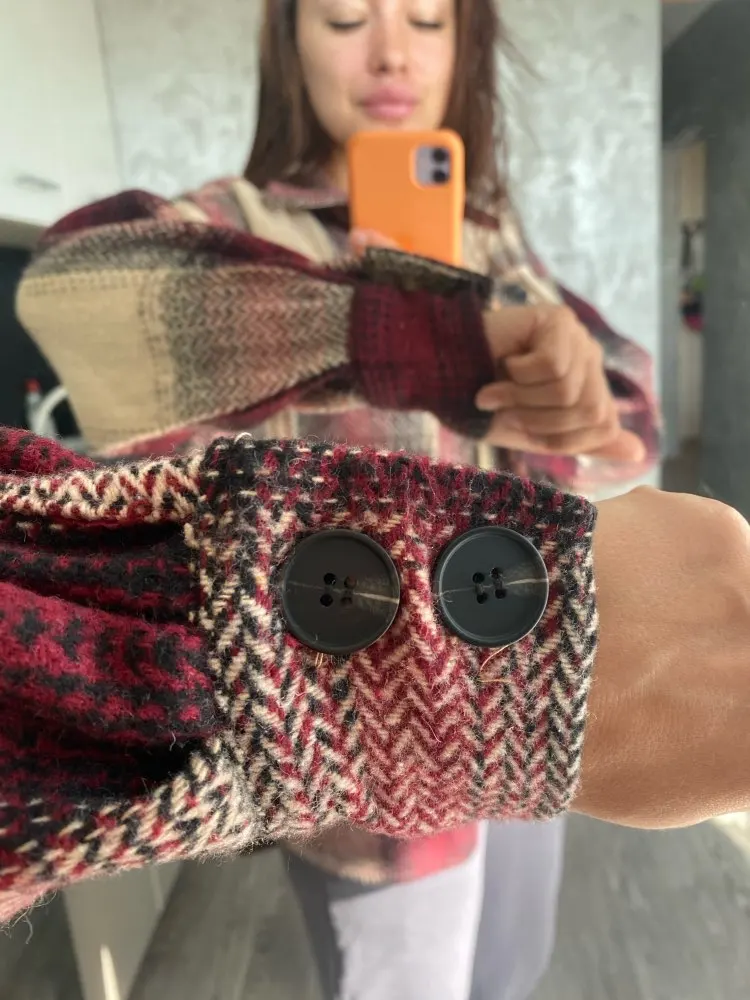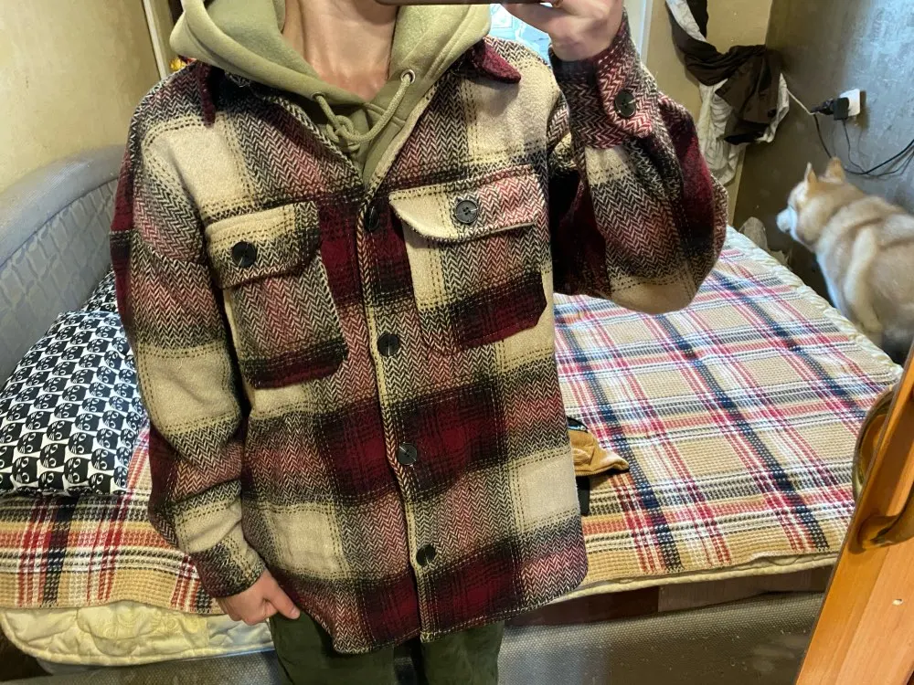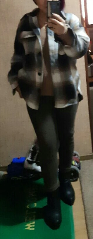 Куртка-рубашка классная, но я ошиблась с размером)) для полного оверсайз нужно было купить xl. Качество отличное, ощущение что в составе есть шерсть. Без подклада, но тёплая. Фото а разным освещением