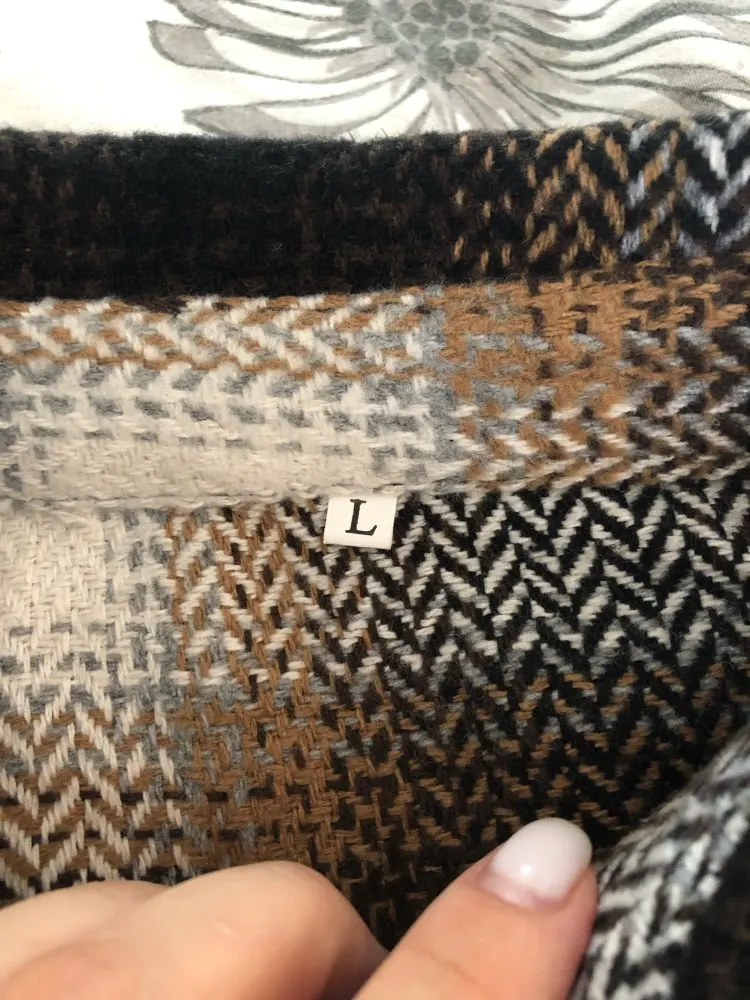 Очень классная рубашка ,тёплая ,не много колется но это не критично . На свой размер S я взяла рубашку размера L, что б сидела как оверсайз . Товаром довольна вообщем !)